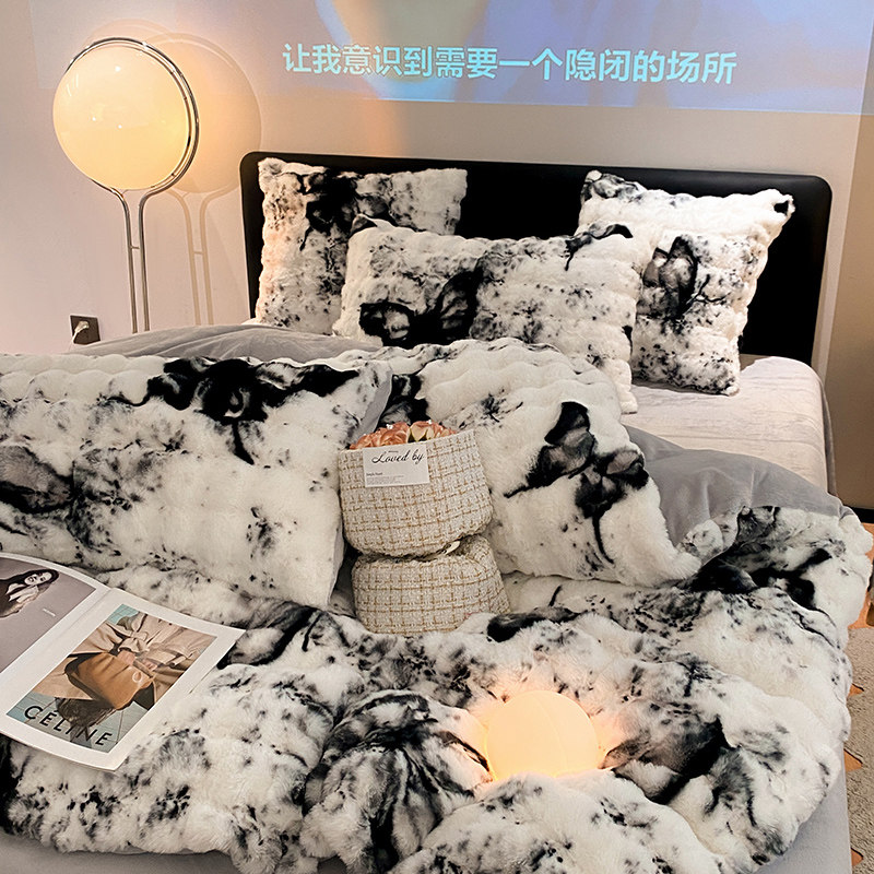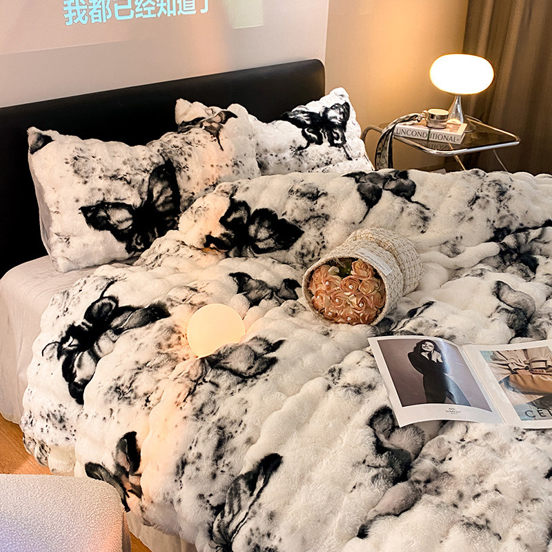 A类法式晕染蝴蝶兔毛绒牛奶绒加厚四件套獭兔绒被套珊瑚绒床笠款4
