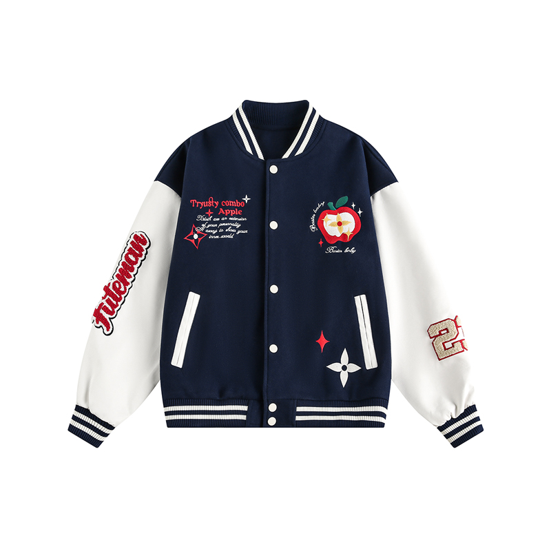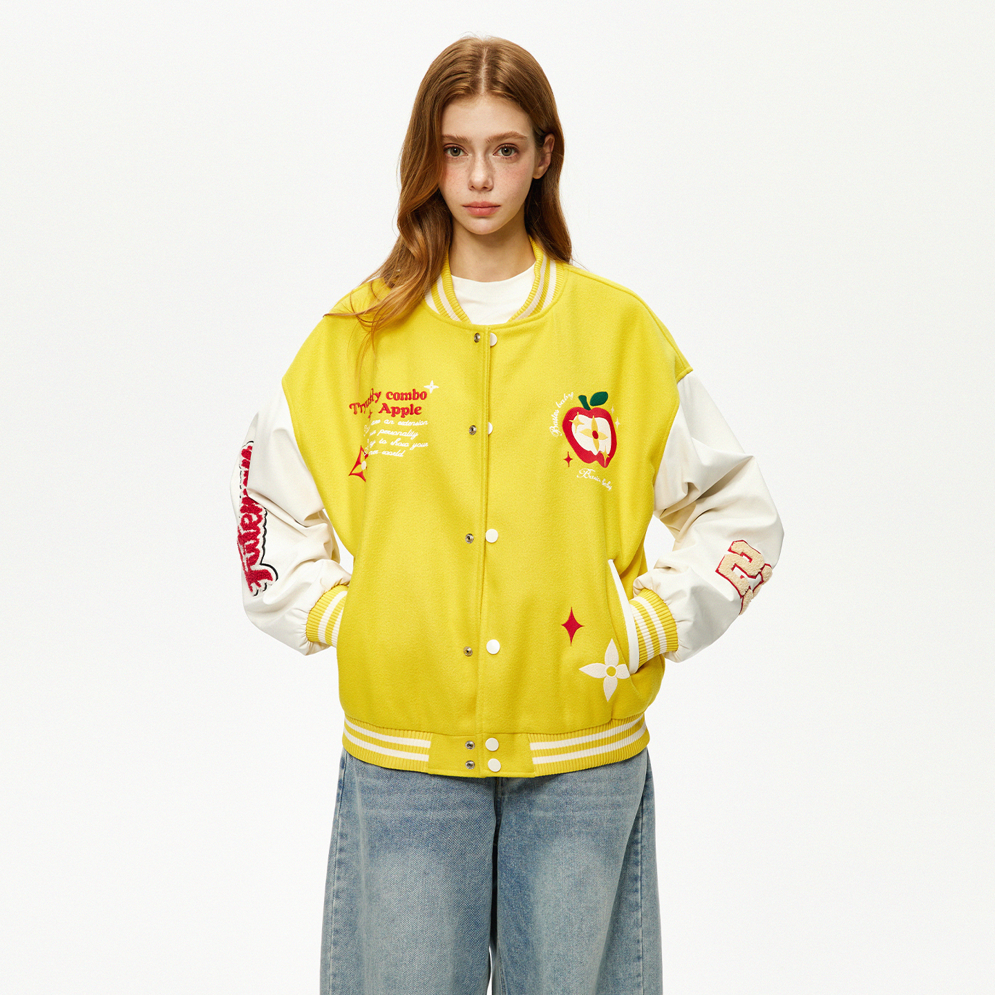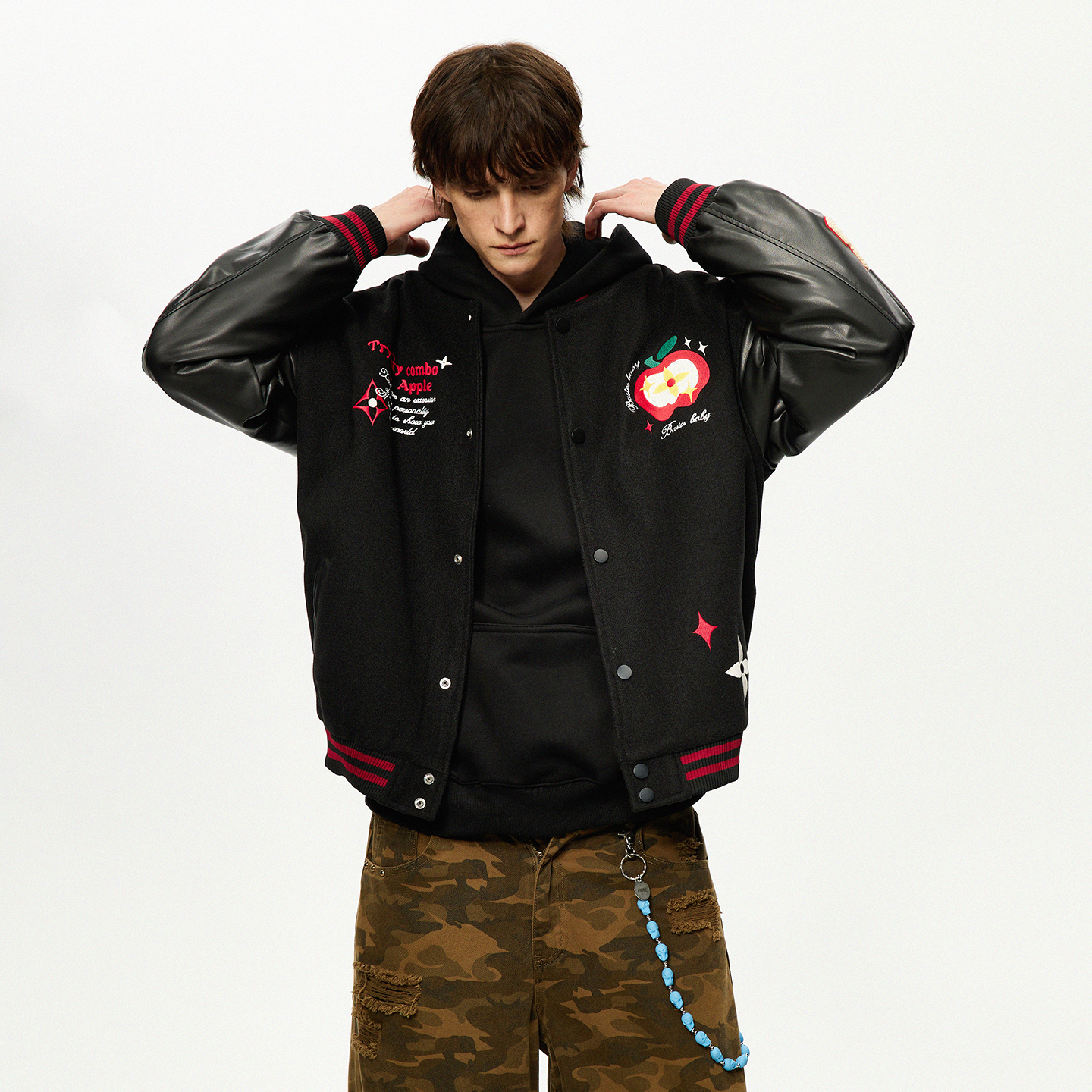 男道美式复古苹果植绒撞色刺绣棒球服男女设计感宽松休闲夹克外套