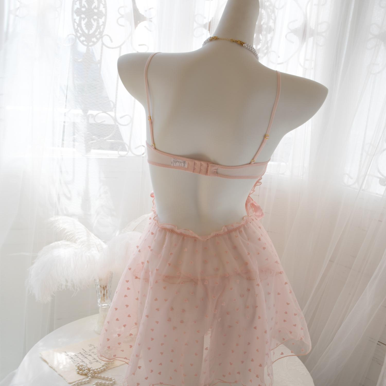 法式新款 纯欲重工刺绣蝴蝶结少女波点性感睡裙带钢圈胸垫