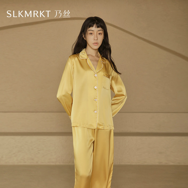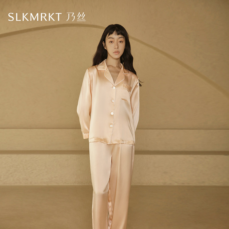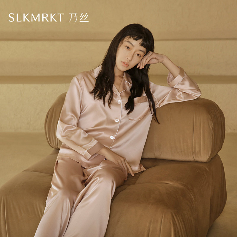 SLKMRKT乃丝重磅19姆米真丝睡衣女桑蚕丝家居服套装春秋两件套