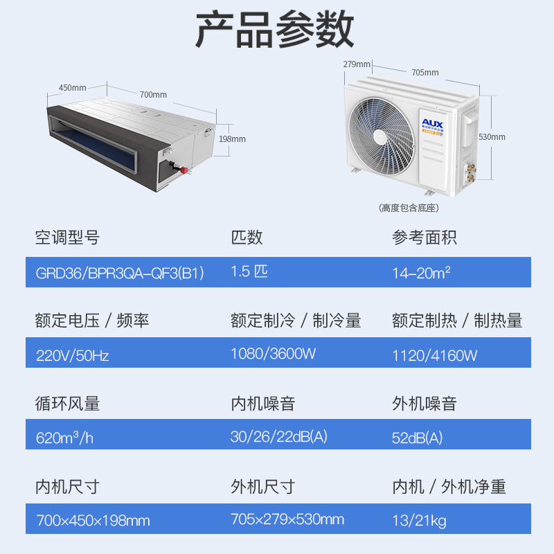 奥克斯中央空调1.5匹一级能效变频一拖一商用风管机官方旗舰店
