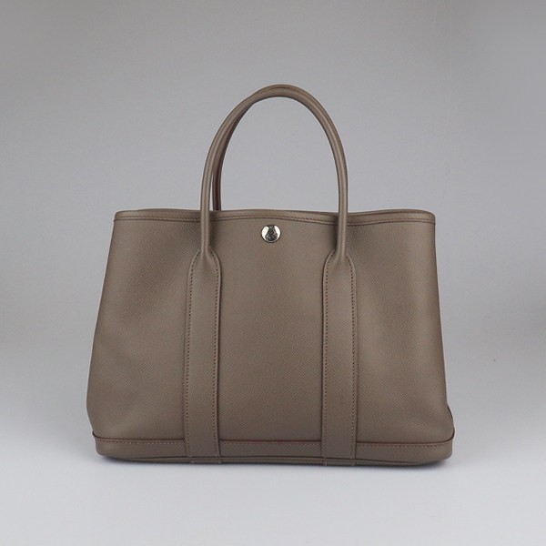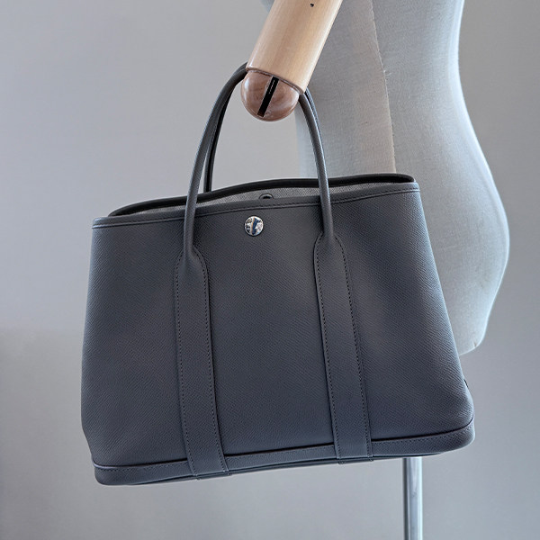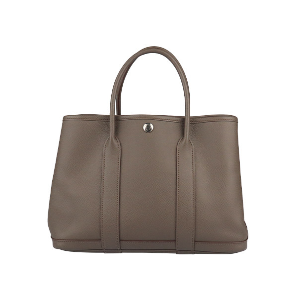 中古9新HERMES爱马仕GARDEN PARTY锡器灰EPSOM皮30手提包