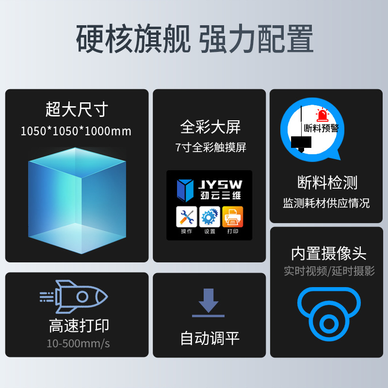 劲云三维3D打印机工业级FDM超大尺寸高精度免调平3d打印手办机器