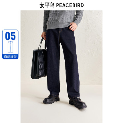 太平鸟男装牛仔裤冬做旧质感热感保暖直筒原牛色复古牛仔裤