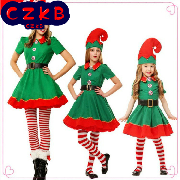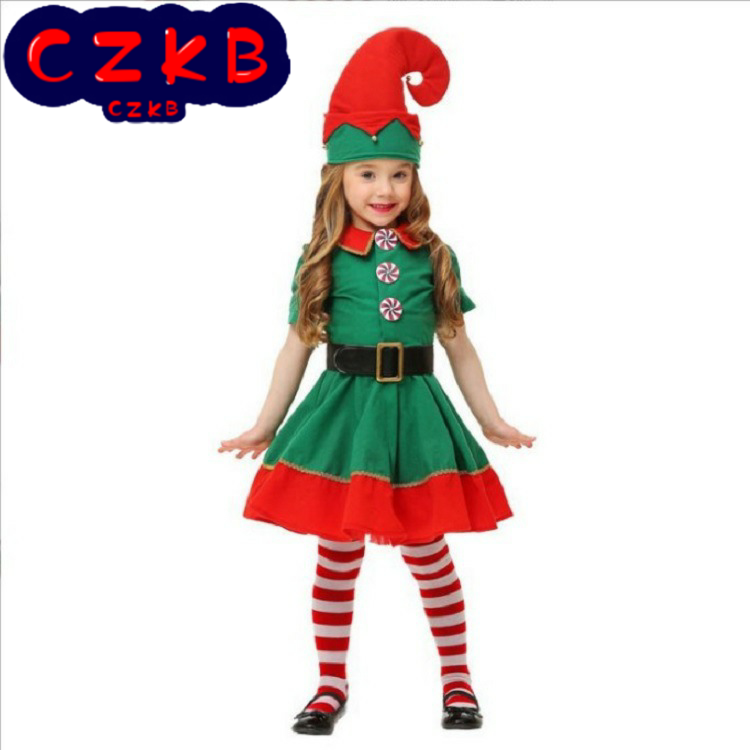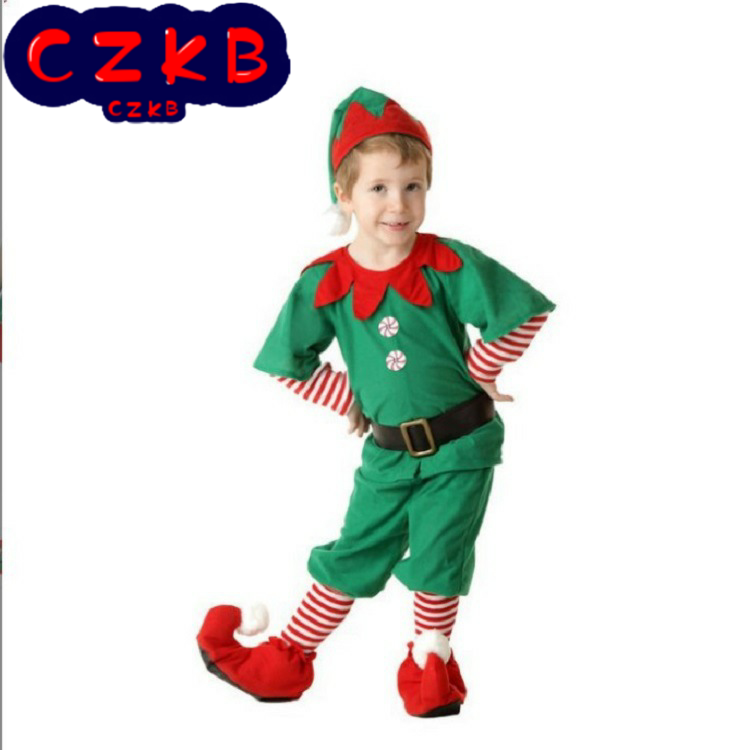 儿童圣诞精灵 圣诞节小精灵cosplay 舞台表演 化装舞会 派对服装
