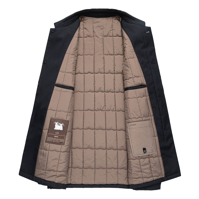 秋冬季纽扣款男士棉衣爸爸装翻领休闲夹棉棉袄中老年免烫百搭外套