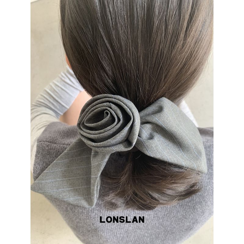 LONSLAN ACC 秋冬复古花朵灰色条纹飘带发圈时尚百搭发饰