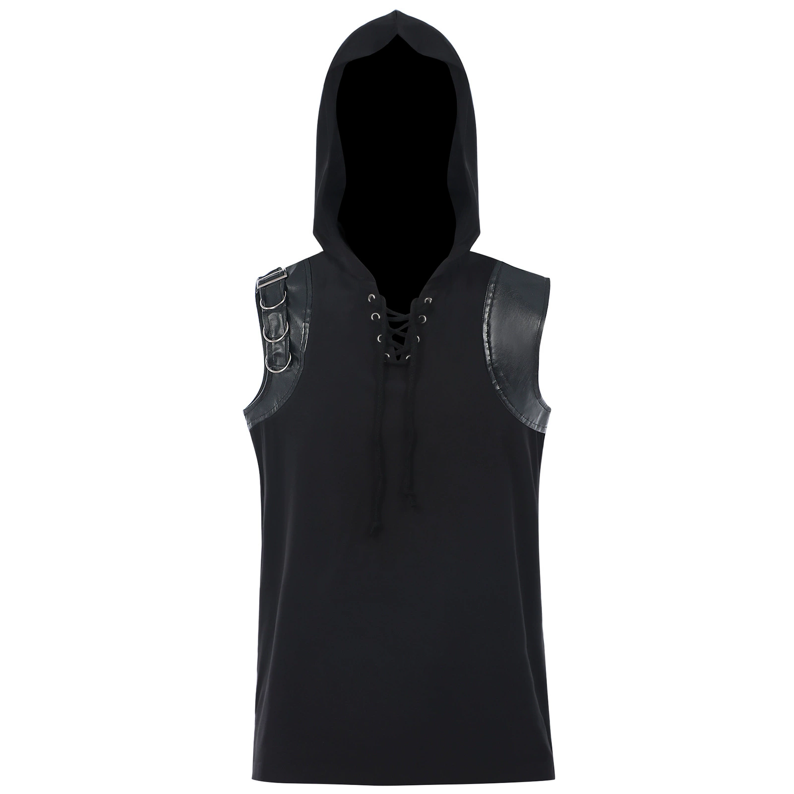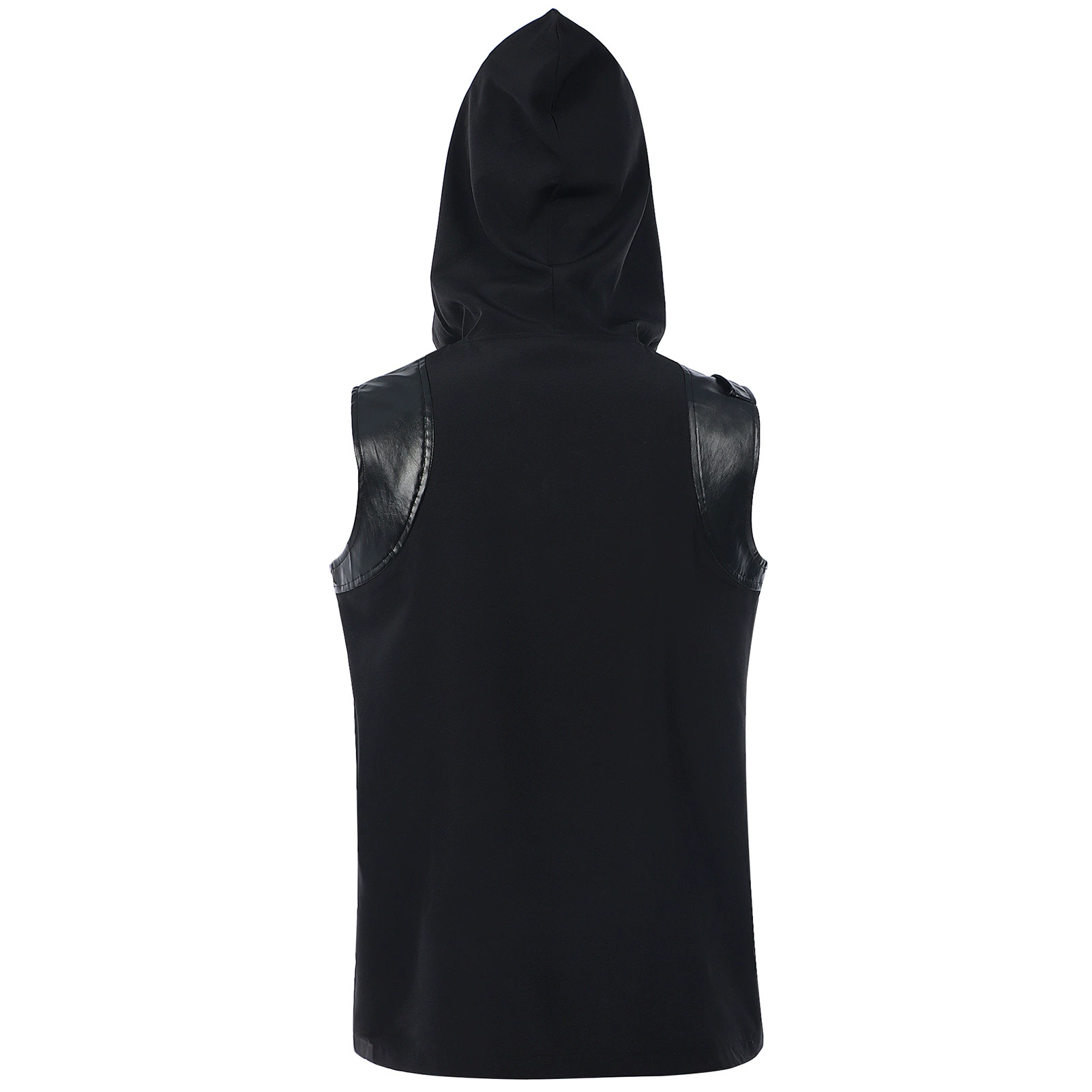 朋克摇滚风男装刺客颓废拼接无袖连帽t恤夜店酒吧表演服背心马甲