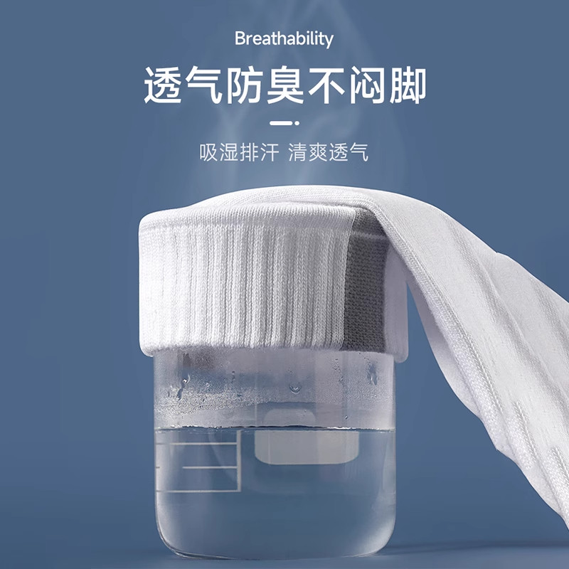 诸暨白色袜子男款短袜春秋季男士运动纯棉防臭吸汗中筒棉袜青少年