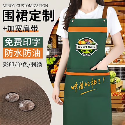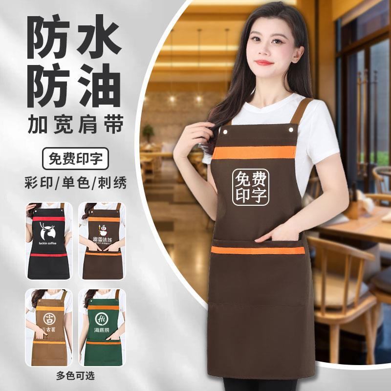 新款围裙餐饮专用定制logo印字防油围腰订做家用时尚服务员工作服