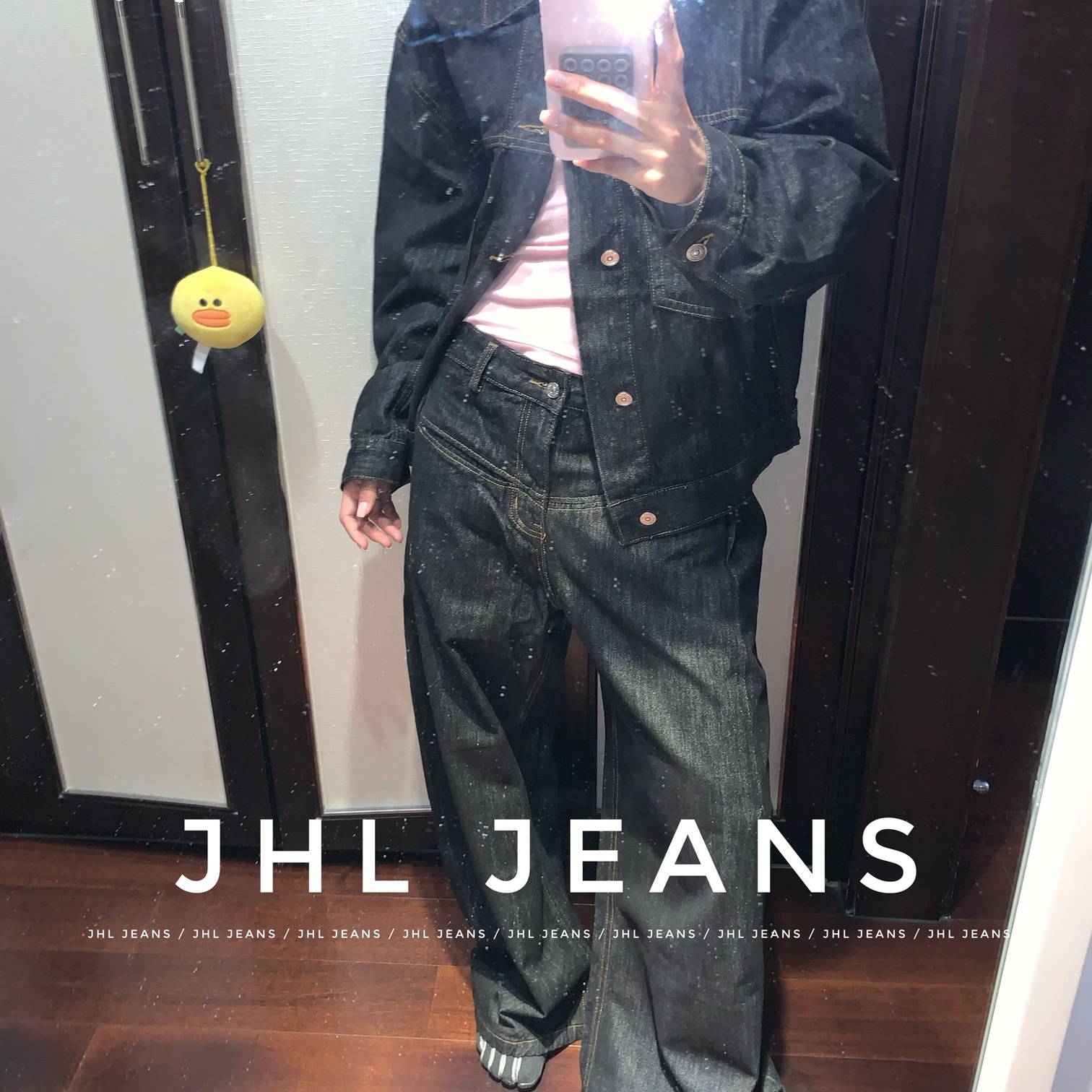 JHL JEANS 25新品复古原色牛仔外套老钱正肩廓形夹克 男女同款