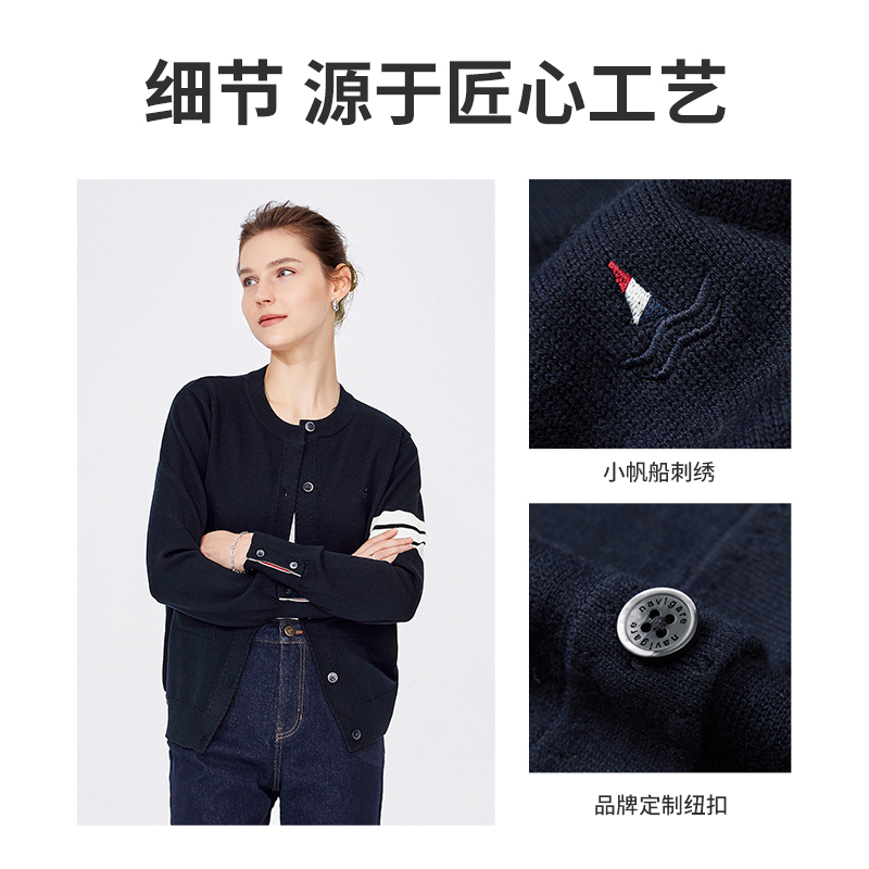 Navigare意大利小帆船女士针织衫百搭通勤毛衣开衫休闲小个子外套