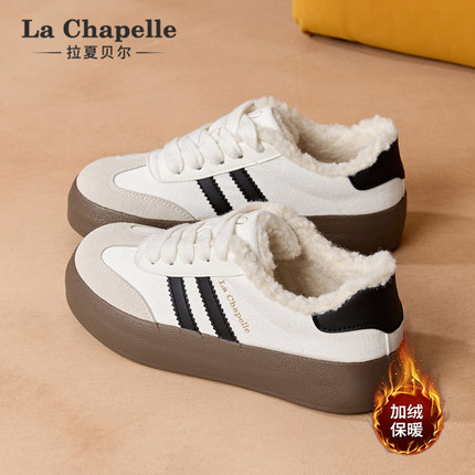 拉夏贝尔加绒小白鞋女2025冬季新款百搭加厚棉鞋休闲保暖德训鞋子