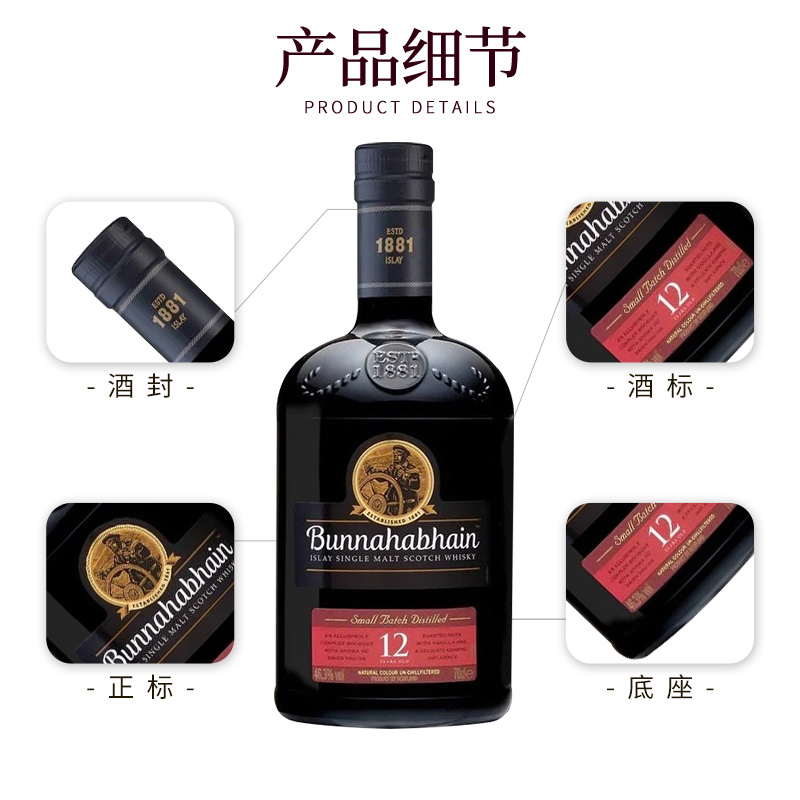 Bunnahabhain 布纳哈本12年 700ml 苏格兰单一麦芽威士忌进口洋酒
