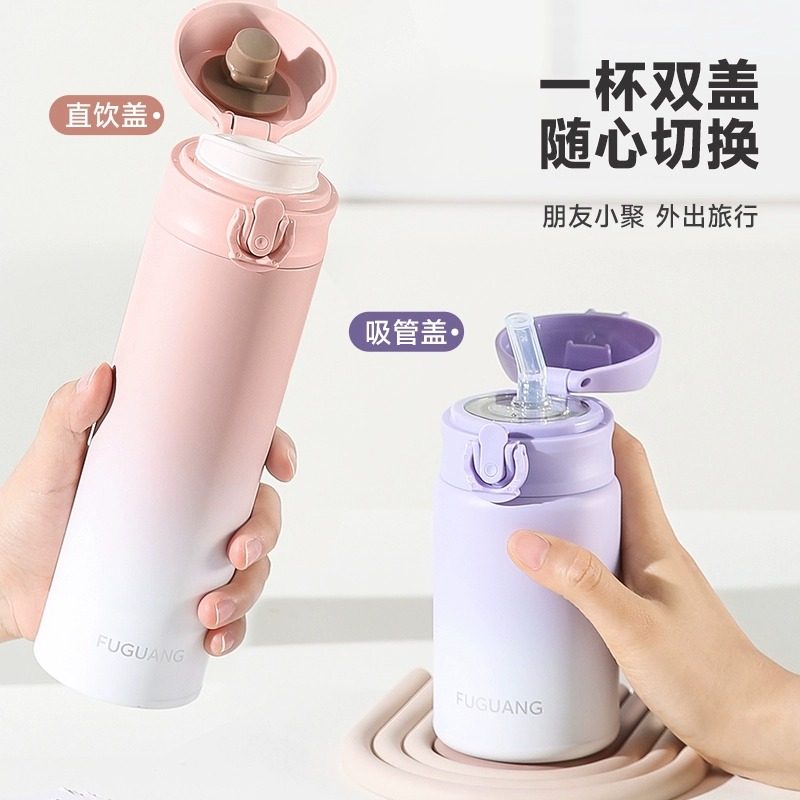 富光保温杯女士带吸管儿童水杯316L不锈钢高颜值孕妇双饮成人杯子