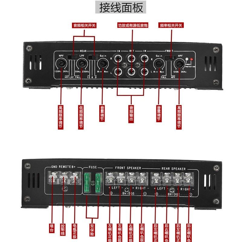 汽车音响改装功放机四路4声道功放大功率放大器可接4门喇叭