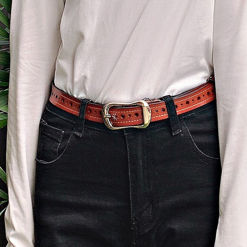 皮带女真皮纯牛皮简约百搭牛仔裤韩版时尚休闲免打孔镂空腰带夏季
