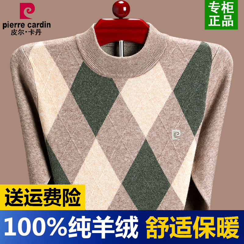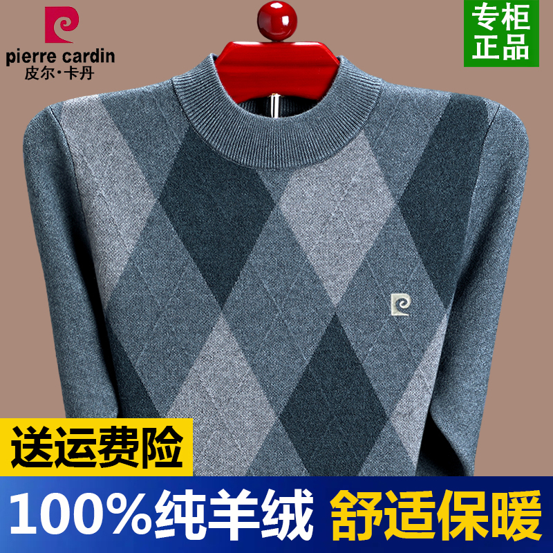 皮尔卡丹100%纯山羊绒衫男冬季加厚保暖半高领毛衣男士打底羊毛衫