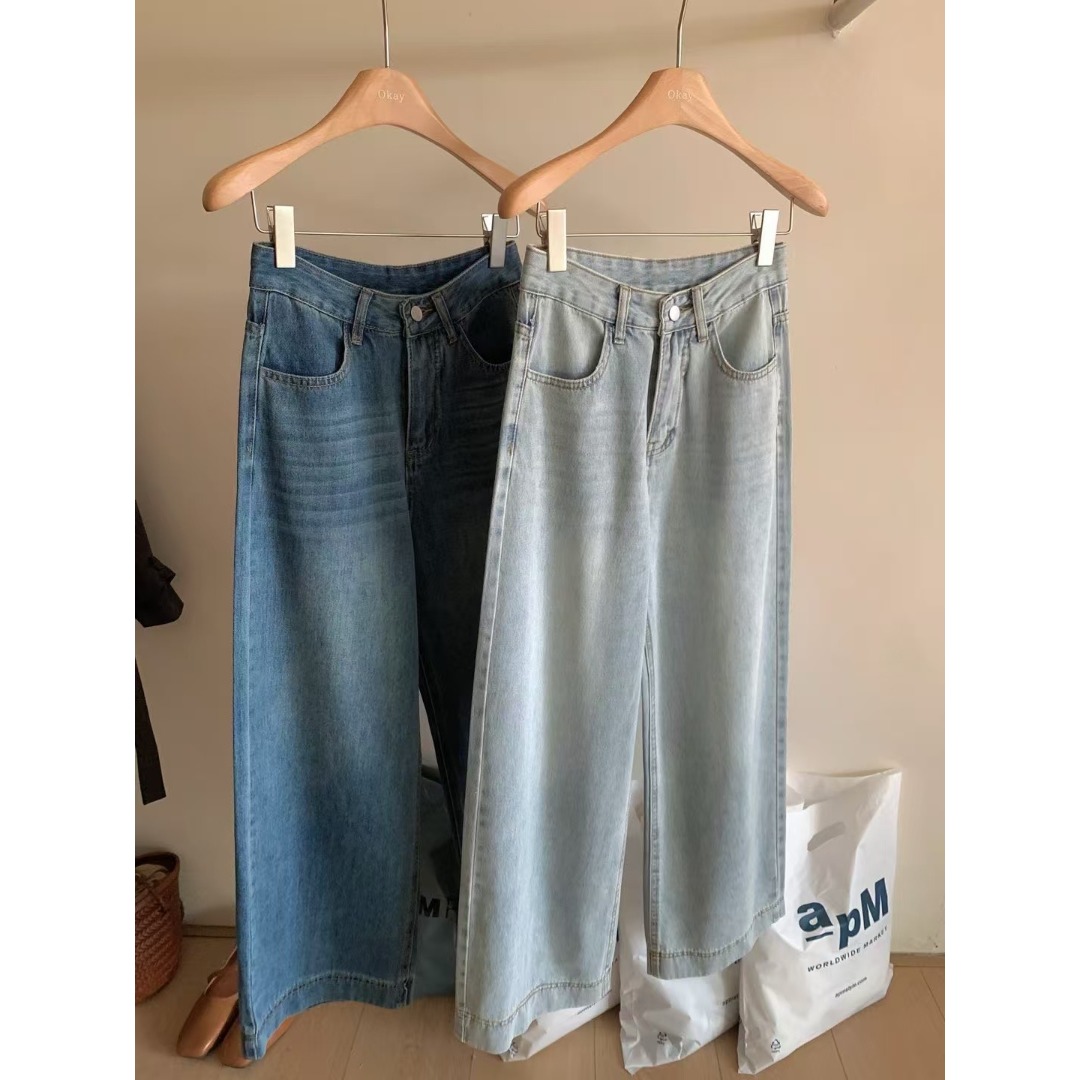 小矮个子145八分阔腿牛仔裤女春季新款韩系高腰休闲九分直筒裤xxs