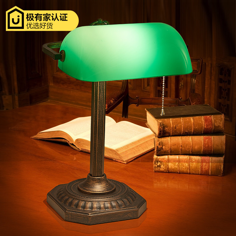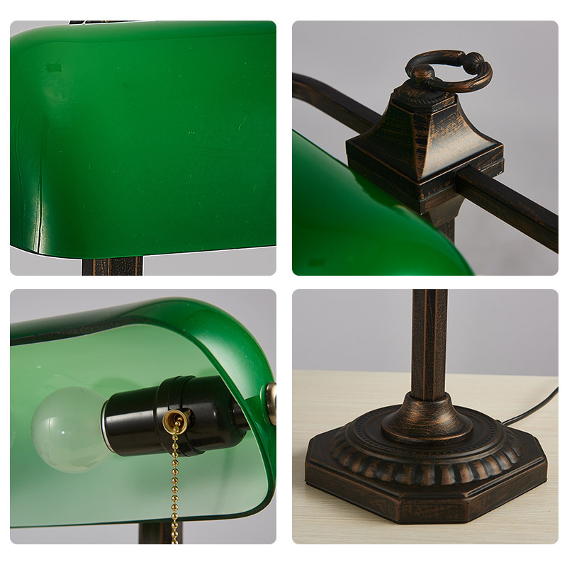 美式仿古铜银行灯 蒋介石民国老式怀旧复古拍摄影视道具绿色台灯
