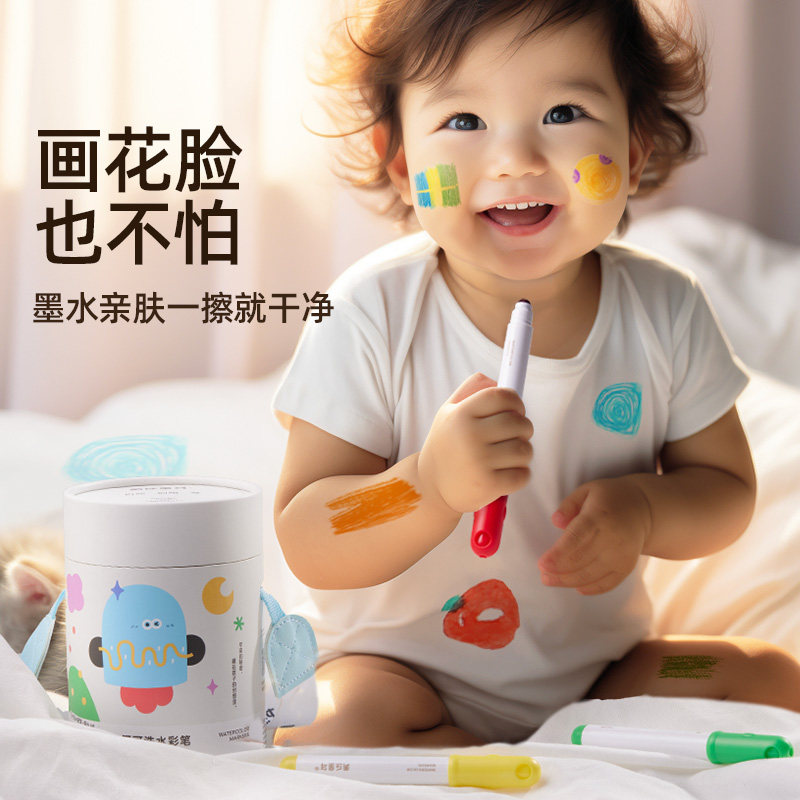 美乐童年儿童水彩笔幼儿园专用无毒可水洗婴儿画笔宝宝婴幼儿套装12色24色圆头画画涂鸦笔绘画水溶性彩笔套装