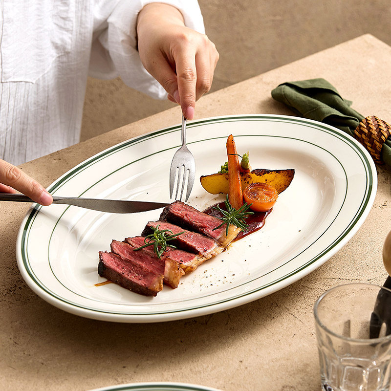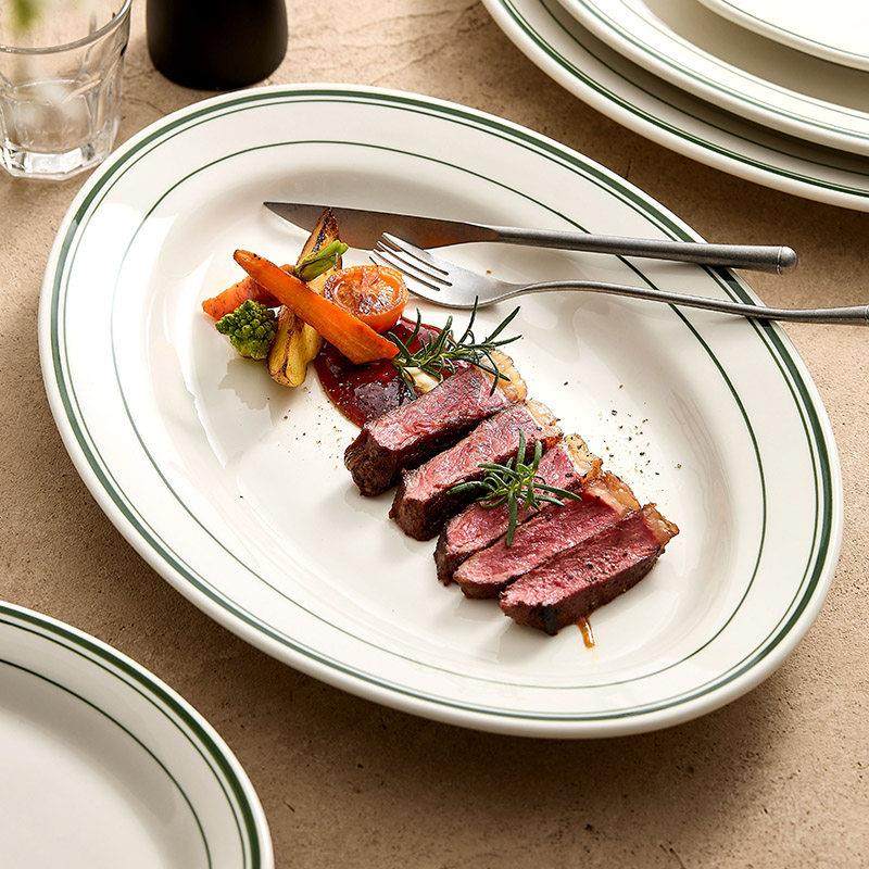 美国德士敦耐高温陶瓷盘西餐厅烤箱专用牛排盘战 斧牛扒干蒸菜鱼