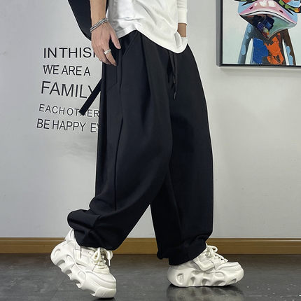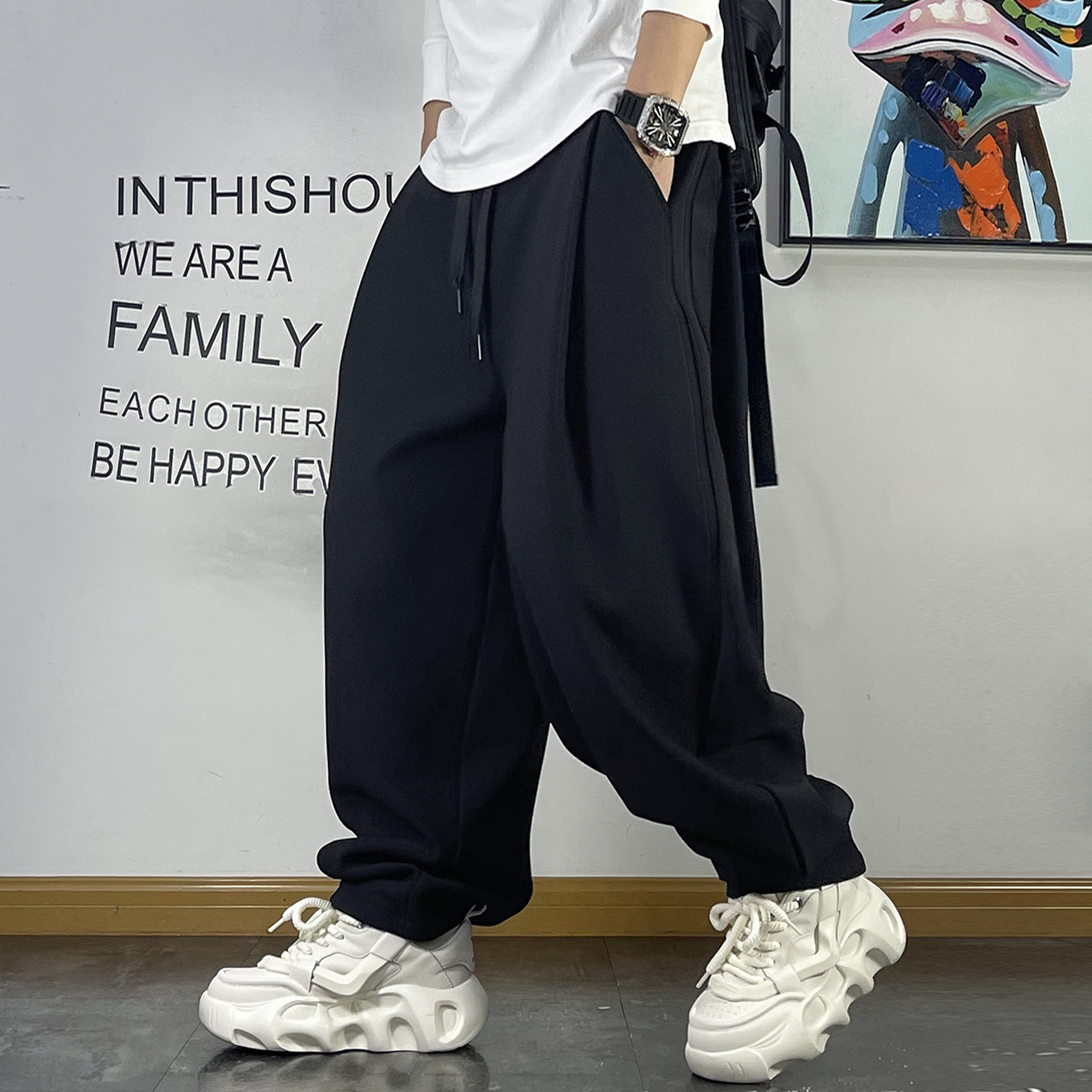 美式休闲宽松阔腿垂感卫裤男直筒裤青年百搭肥仔裤冬季简约哈伦裤