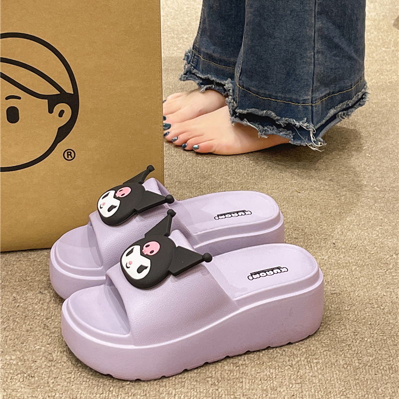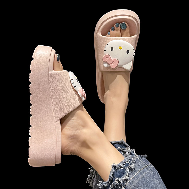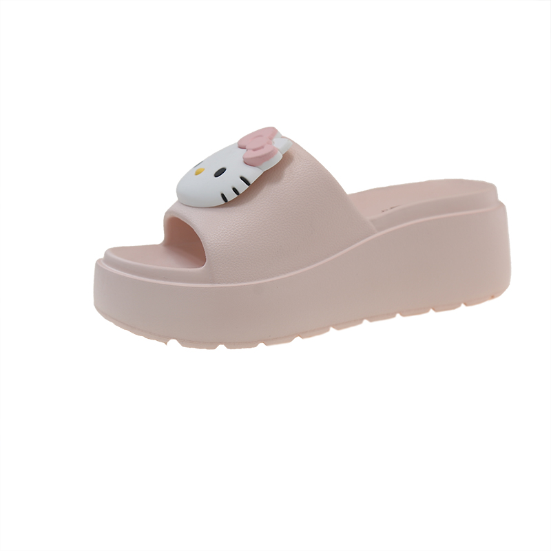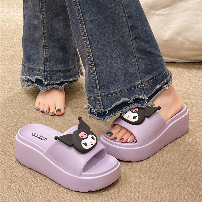 高跟一字拖女夏季外穿可爱卡通室内居家坡跟厚底防滑踩屎感凉拖鞋