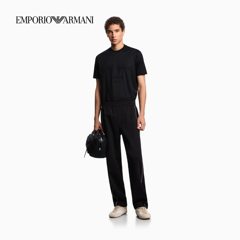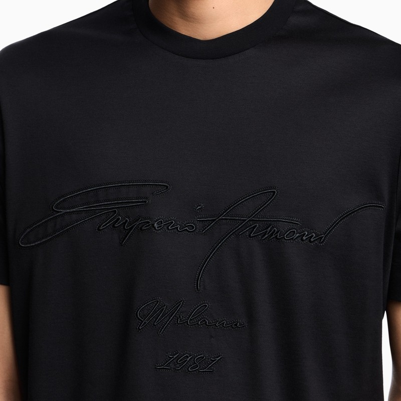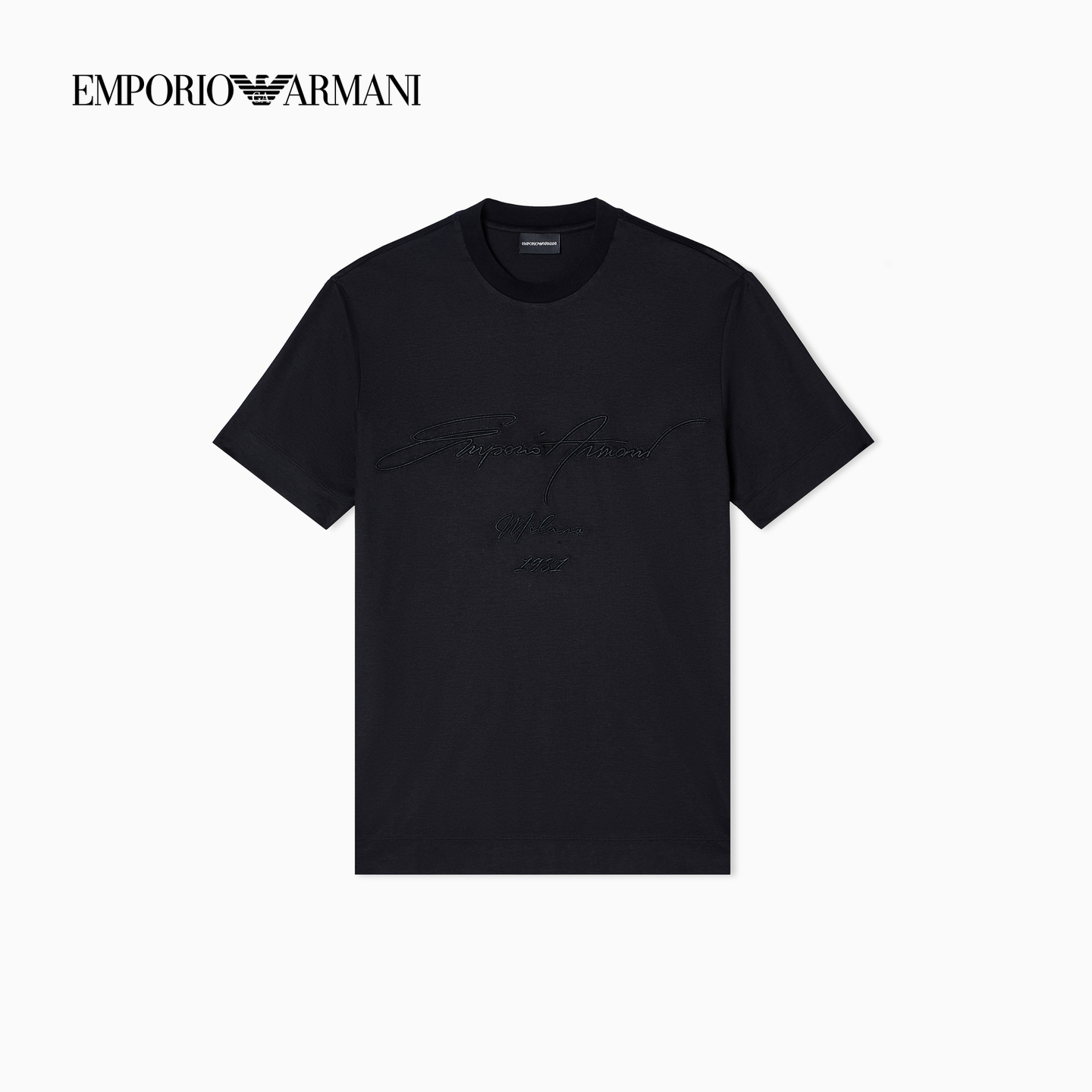 EMPORIO ARMANI/阿玛尼冬季新款男士莱赛尔棉圆领短袖刺绣薄T恤