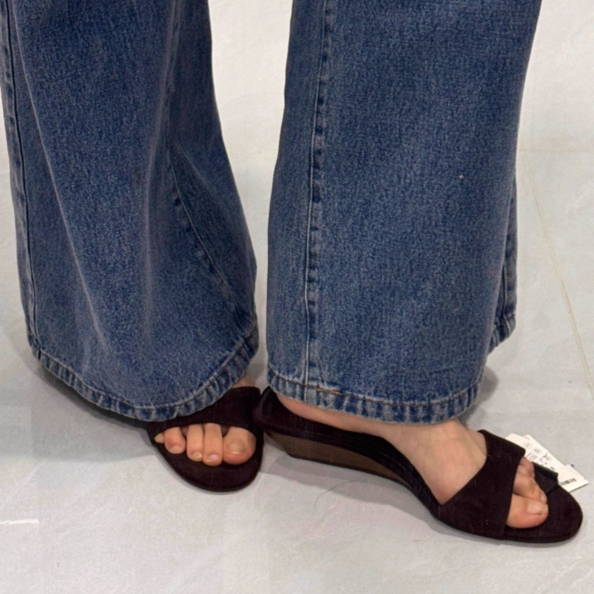 高级感坡跟凉拖鞋女2025新款夏季外穿一字拖复古棕色低跟露趾凉鞋