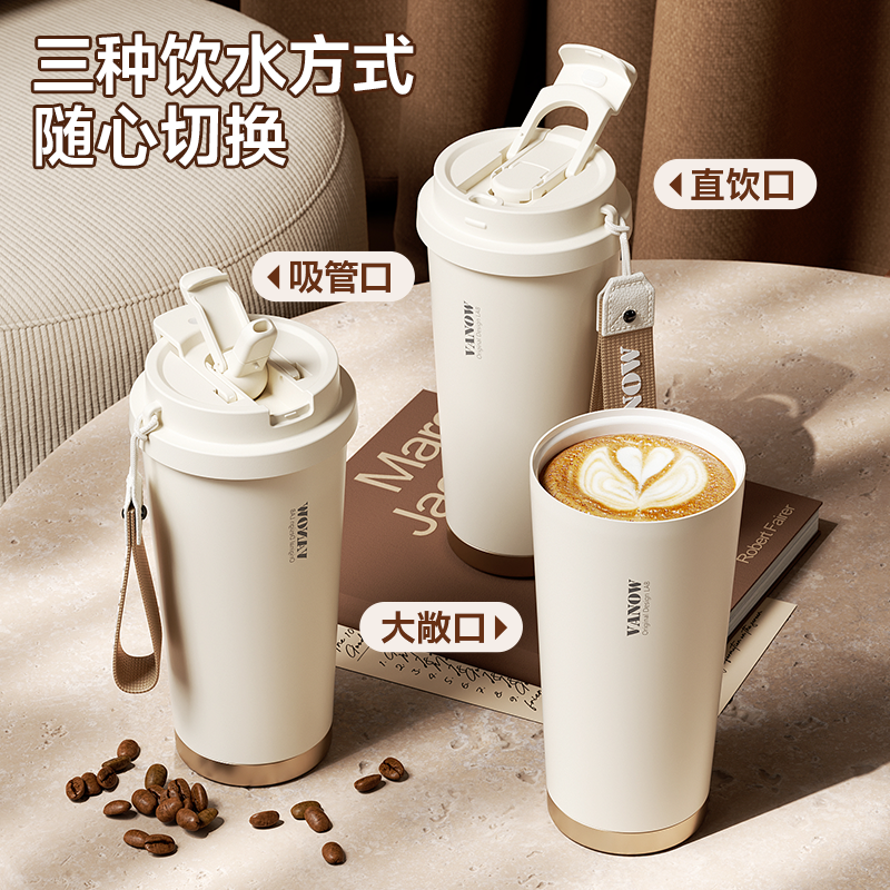 Vanow保温杯女士高颜值2025新款咖啡杯外出携带陶瓷内胆男水杯子