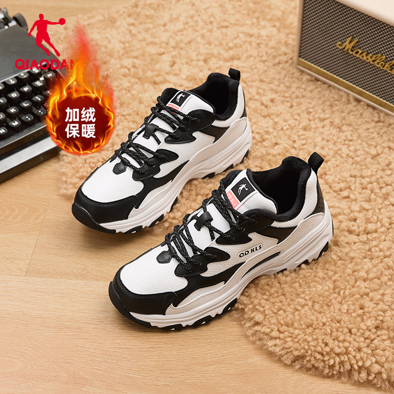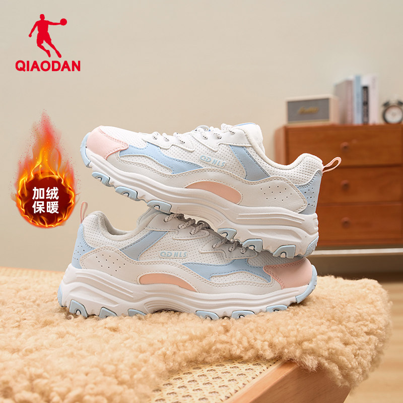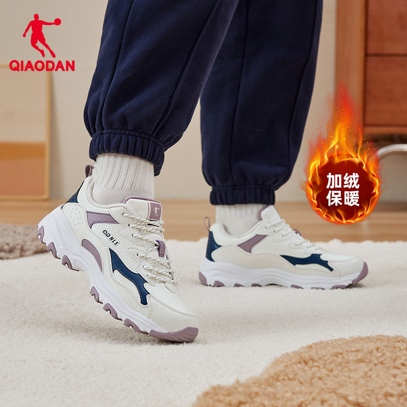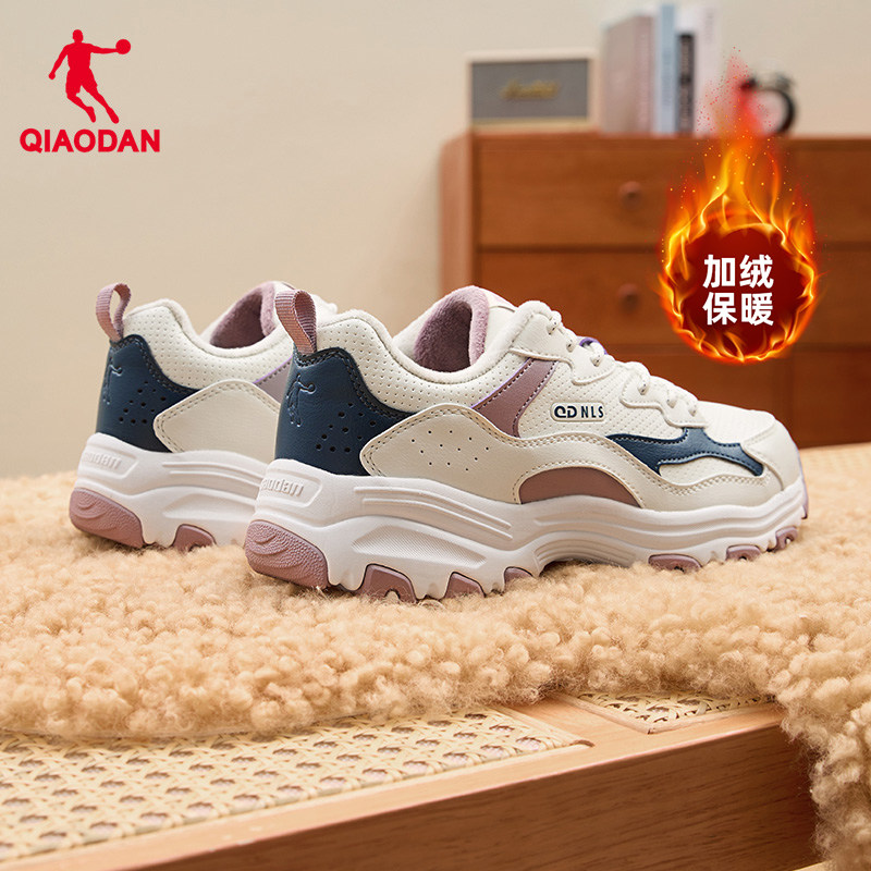 乔丹女鞋加绒保暖老爹鞋女皮面鞋子2025冬季运动鞋女鞋二棉休闲鞋