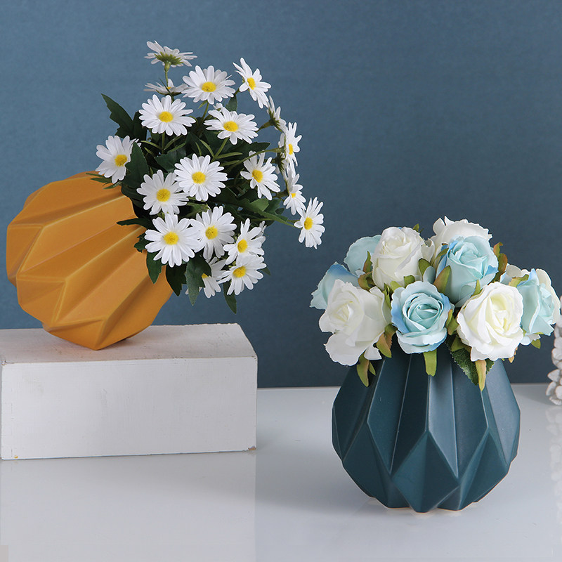 北欧陶瓷折纸花瓶莫兰迪花器仿真花艺玫瑰套装客厅玄关装饰摆件