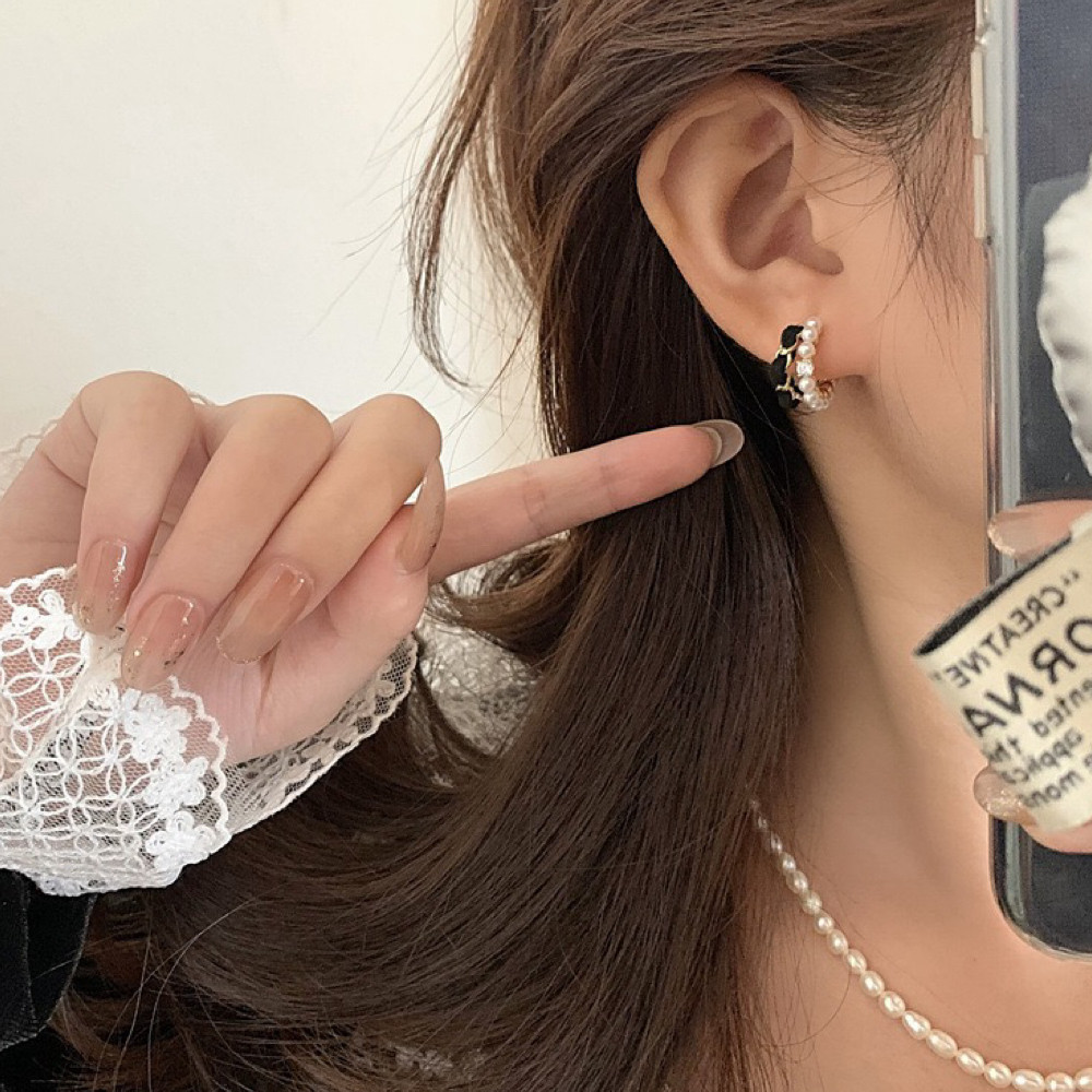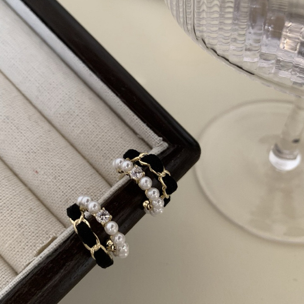 无耳洞「鸦羽缠月」黑色丝绒耳圈耳饰轻奢高级气质无痛蚊香盘耳夹