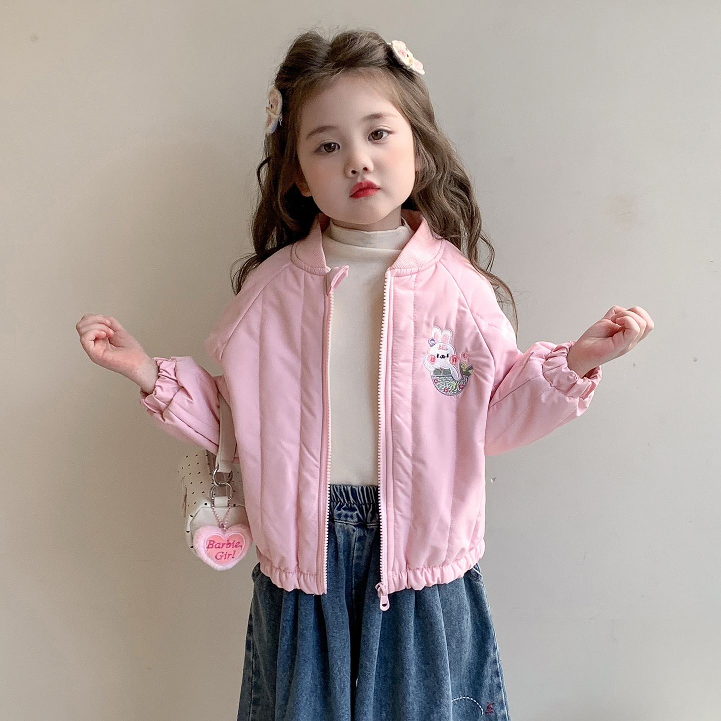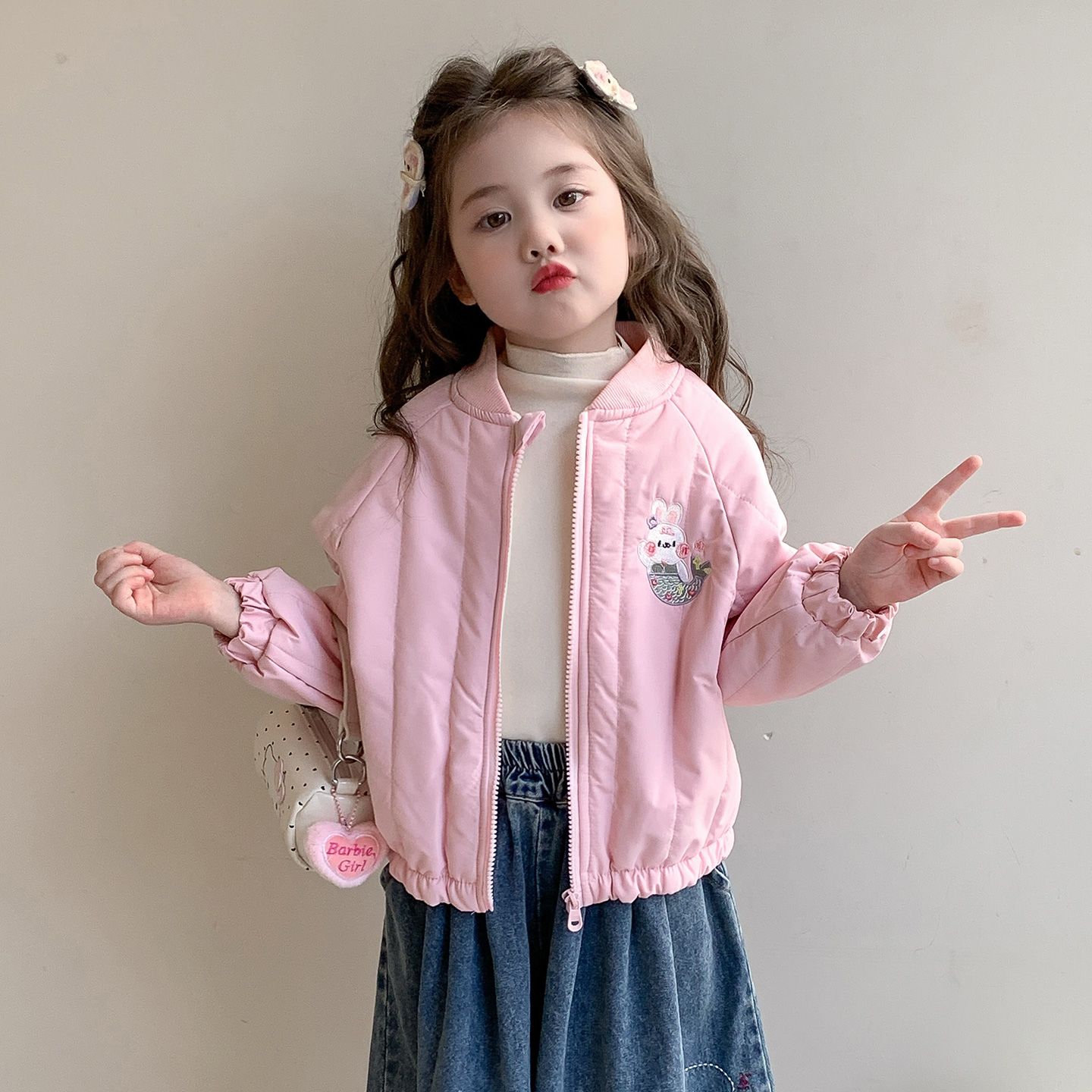 女童加绒外套秋冬季2025新款儿童薄款棉服女宝宝冬装夹棉休闲上衣
