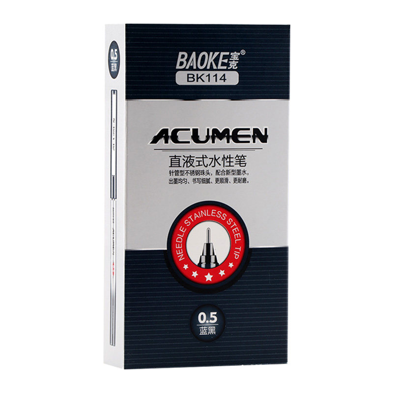宝克中性笔BK115黑色签字笔红色直液式子弹头蓝色水笔走珠笔针管