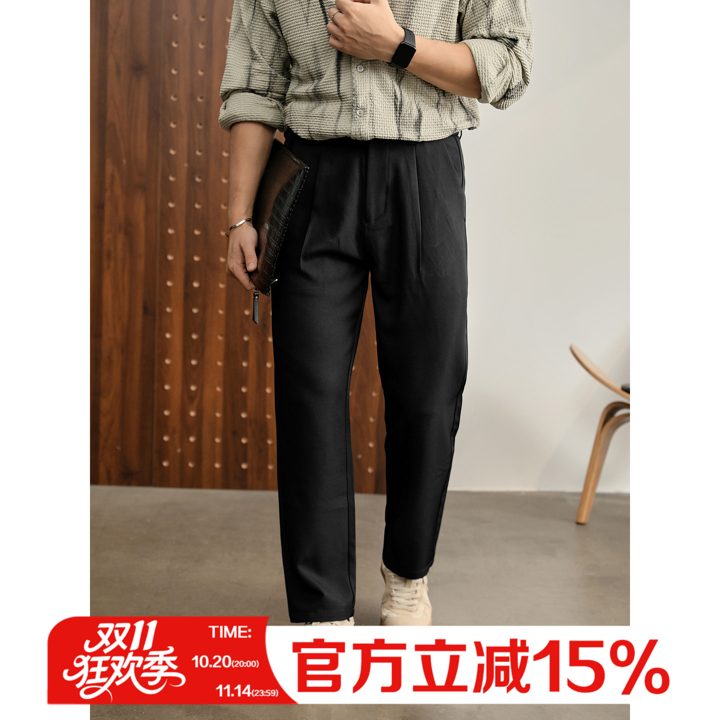 LUUD 净色韩系乐丽丝四面弹直筒西裤男秋季按扣拼接休闲百搭长裤