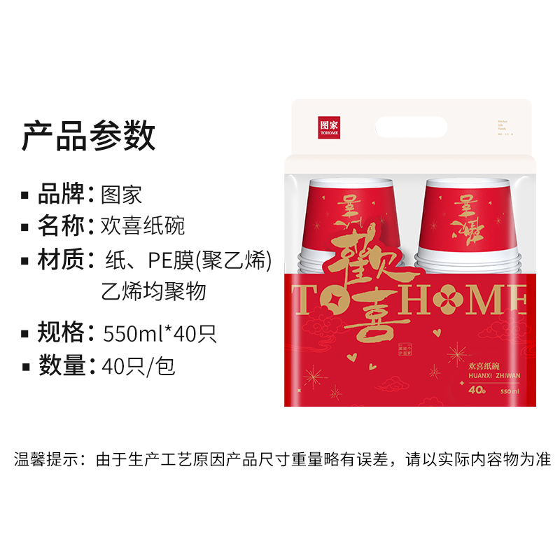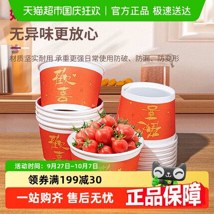 图家一次性碗加厚纸碗圆形饭盒外卖打包盒露营餐具汤碗筷