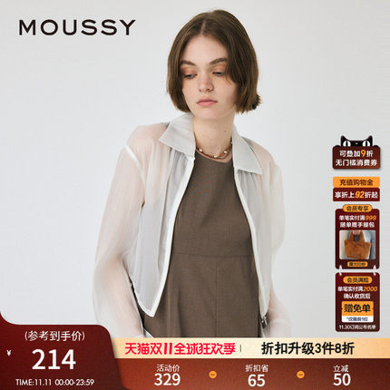 MOUSSY 夏季新品休闲风透视遮阳拉链抽绳衬衫女010HS230-2131