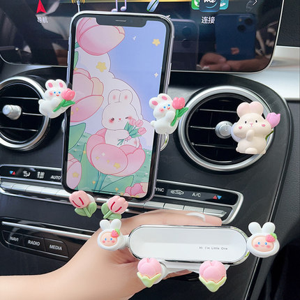 新款车载手机支架导航车上卡通小兔车内出风口装饰汽车固定支撑架