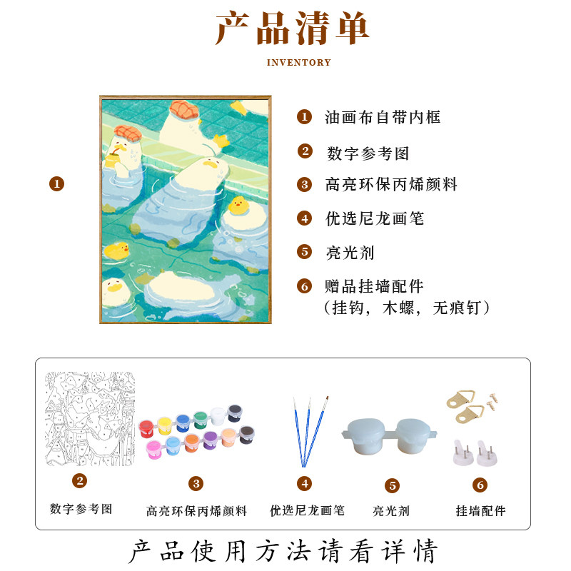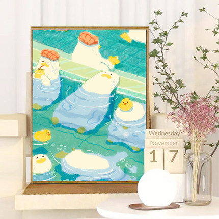 可爱鸭子diy数字油画手工填色画手绘填充丙烯卡通油彩画装饰挂画