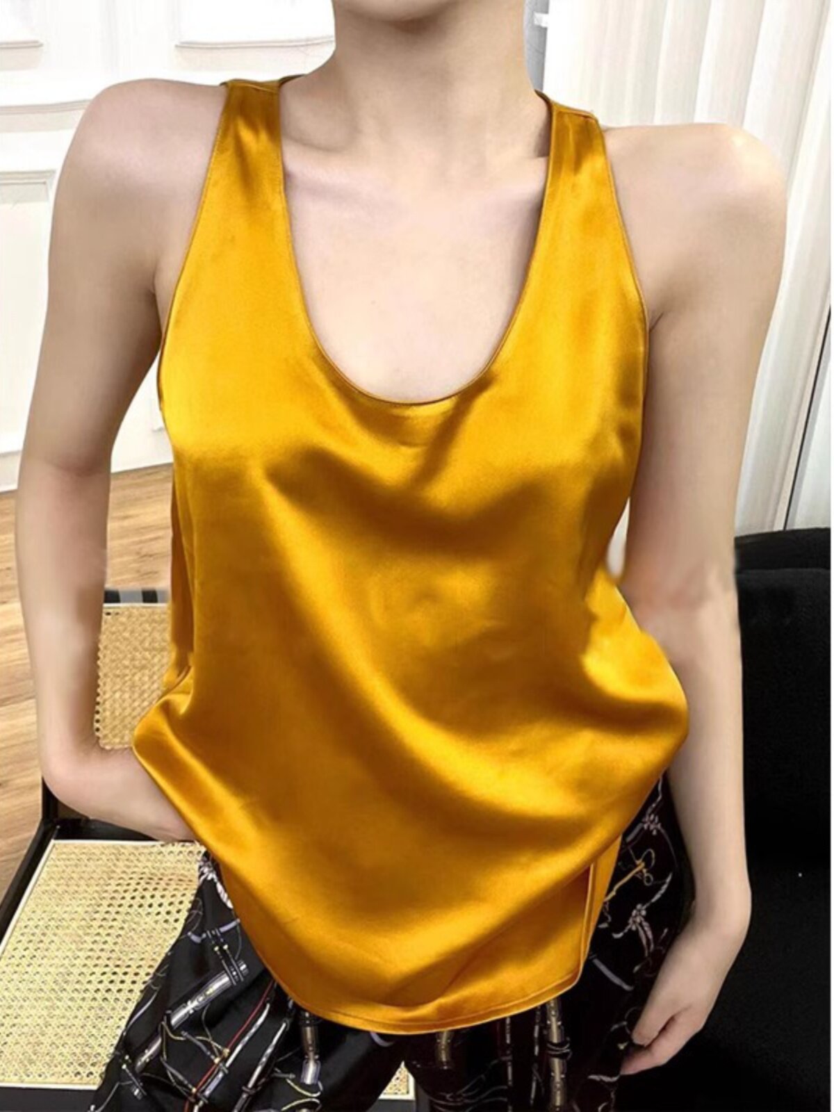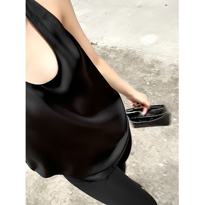 进口三醋酸缎面背心女春夏百搭外穿内搭打底圆领无袖上衣ins潮