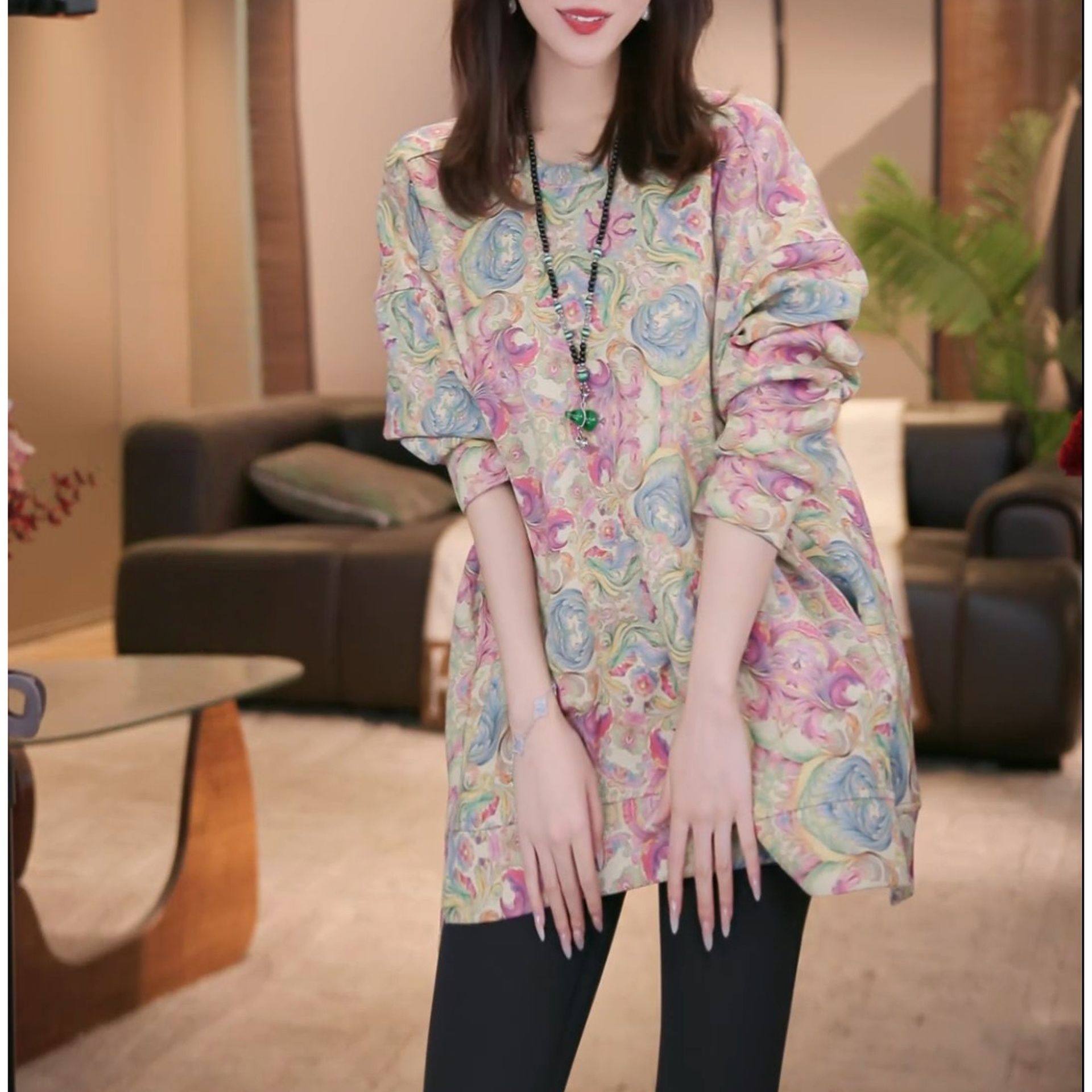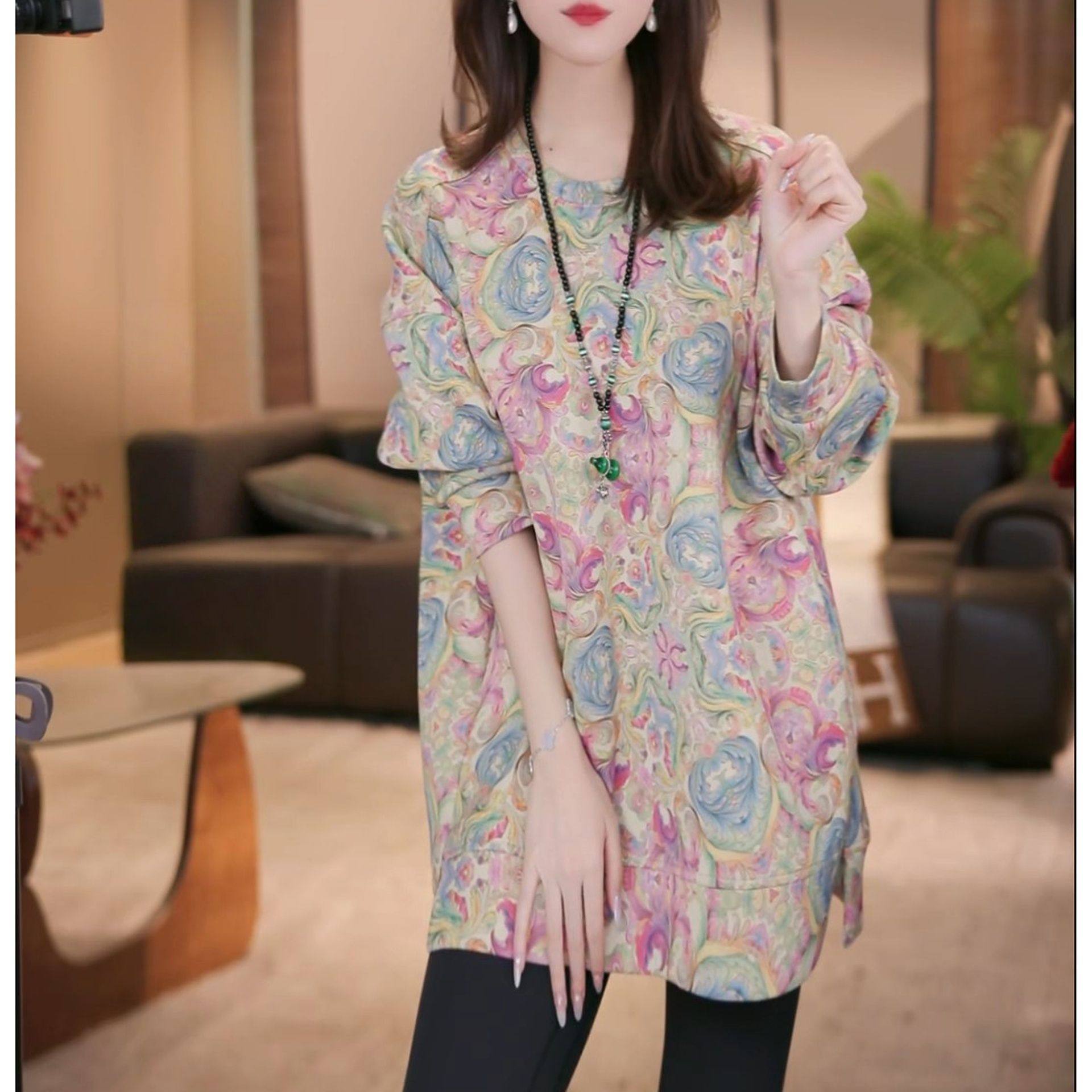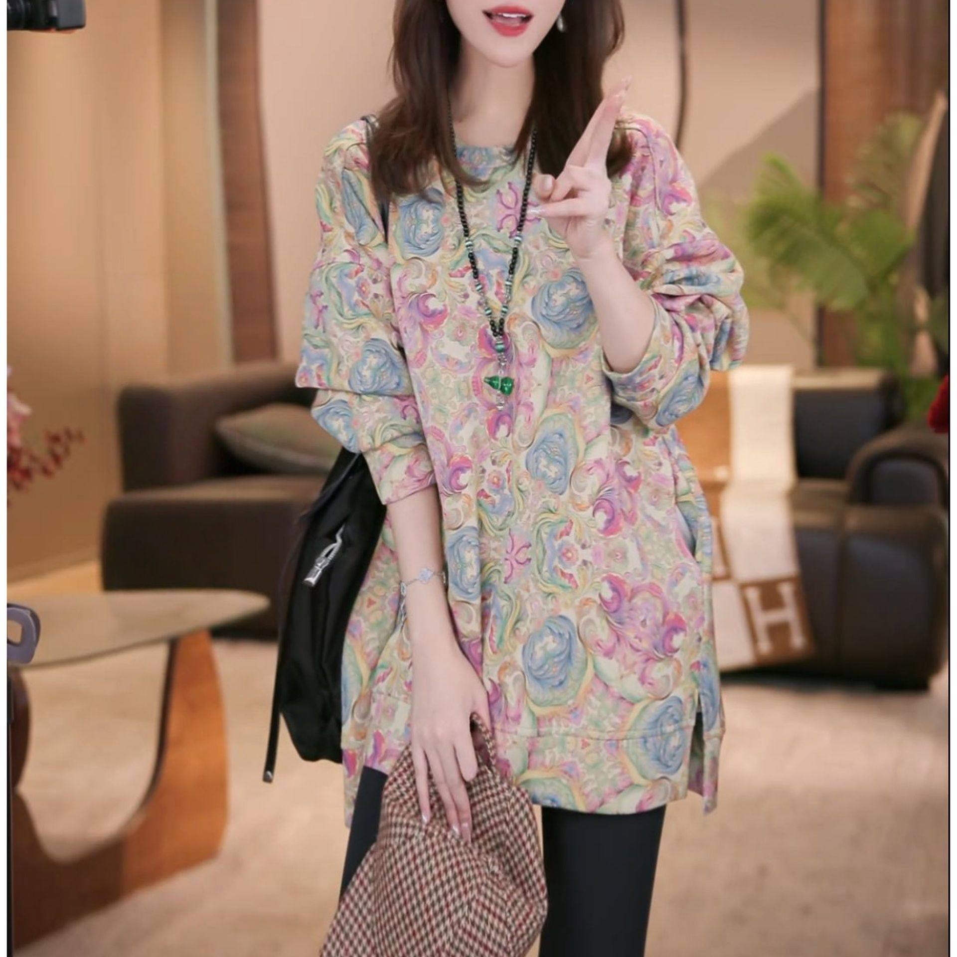 2025秋冬新款洋气设计感印花长袖上衣女时尚加绒加厚保暖休闲卫衣