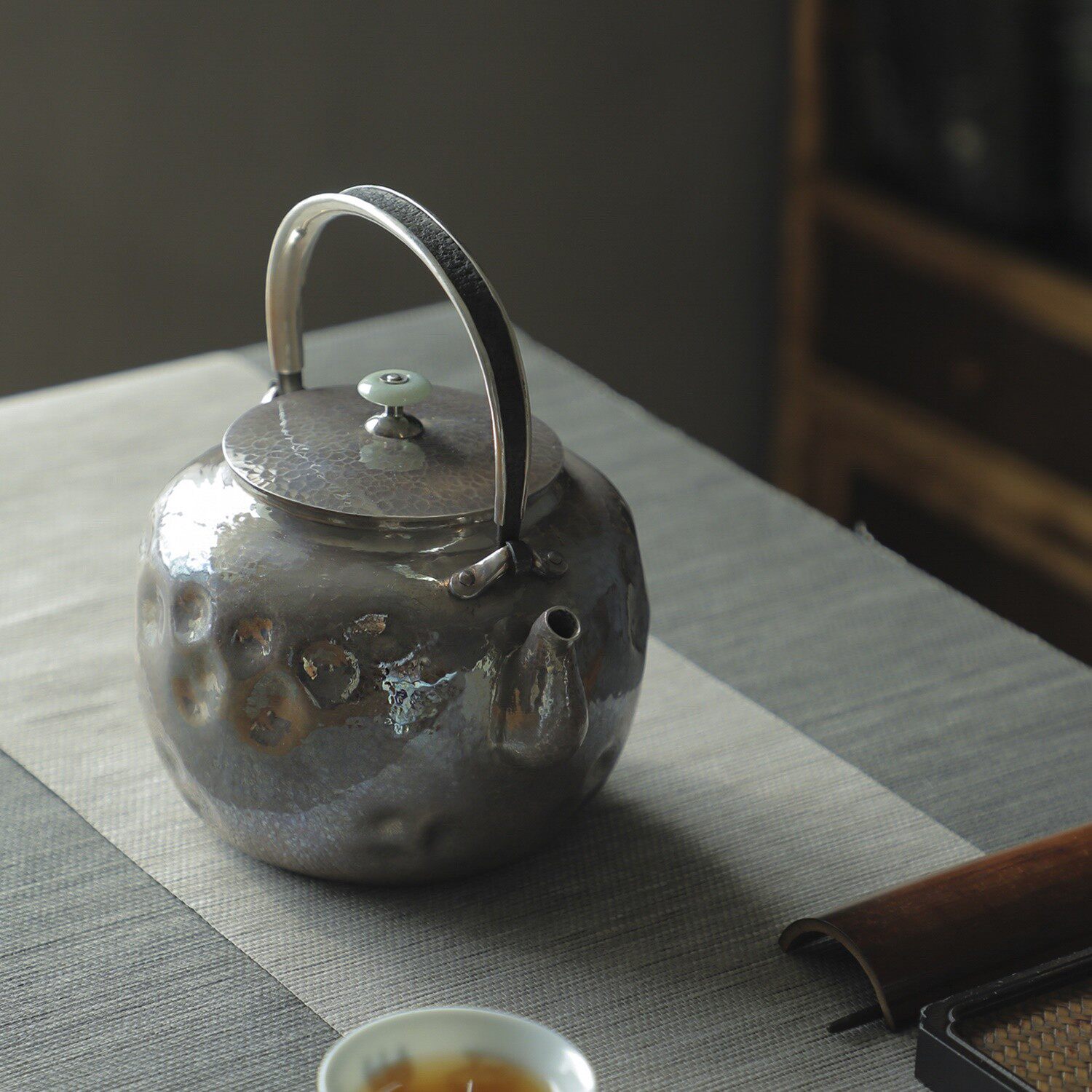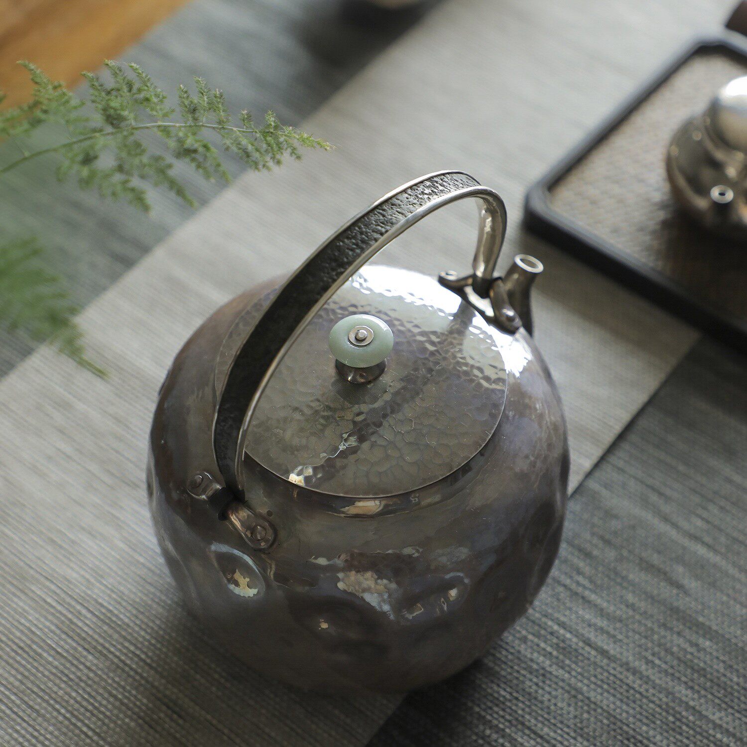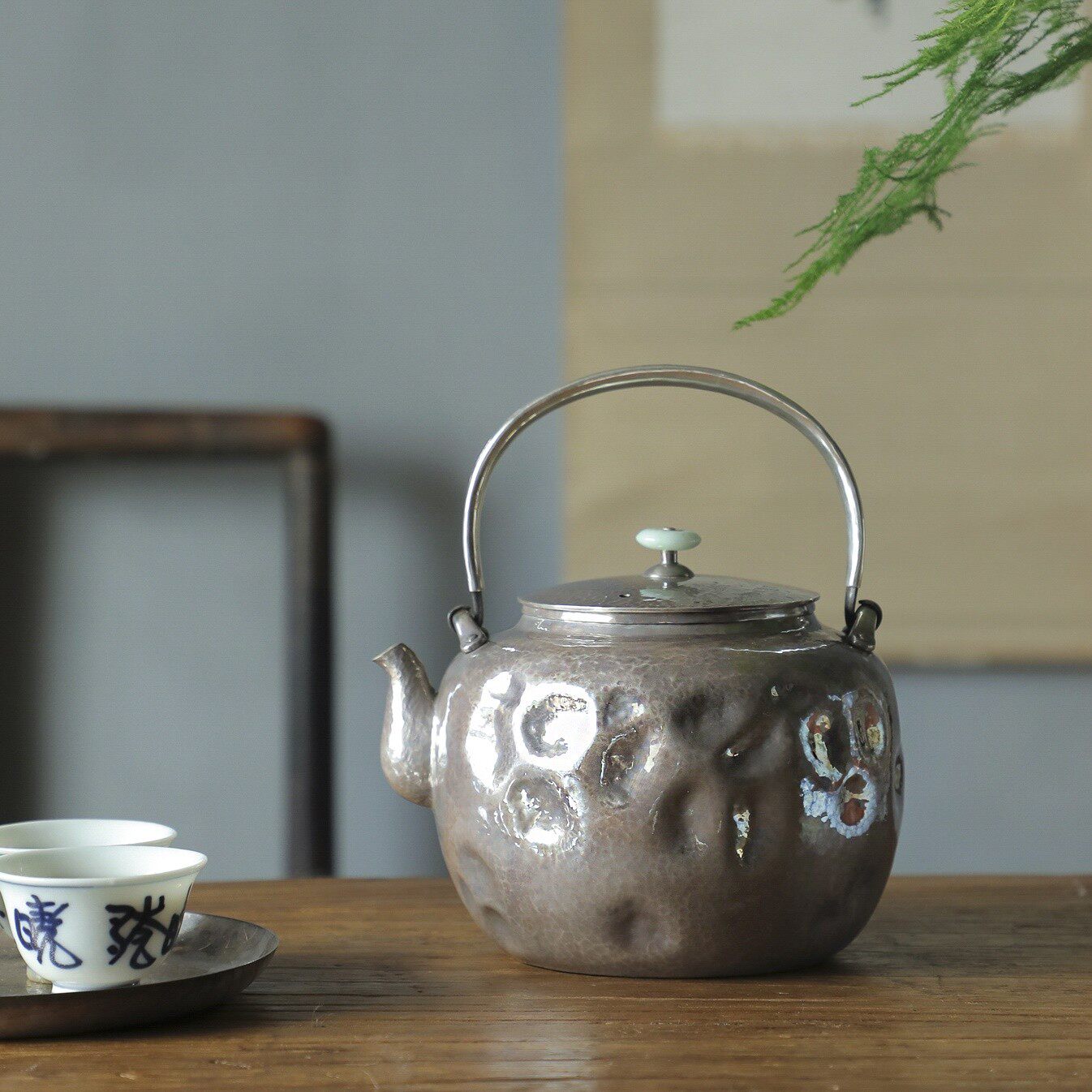 纯银时代日式口打出紫皮锤坑银壶足银999烧水壶手工银茶壶1100ml