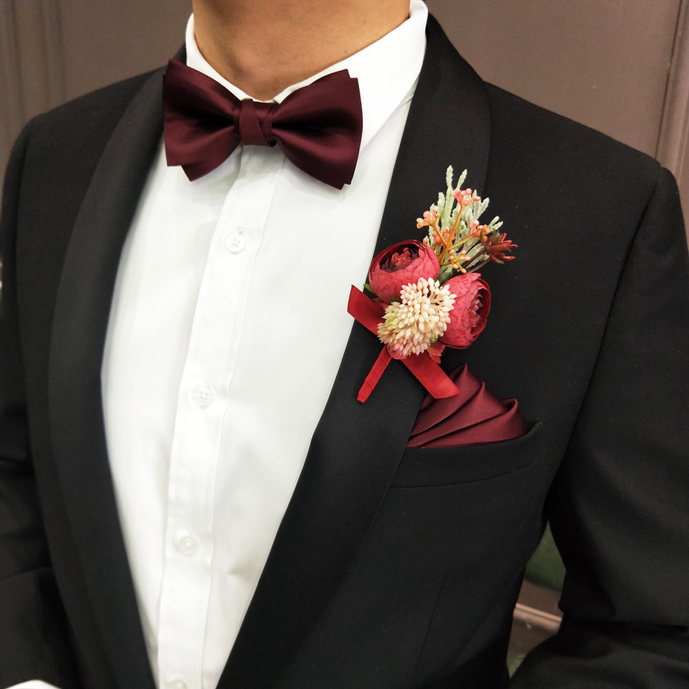 海德公园领结新郎结婚婚礼暗深酒红纯色时尚潮西装男士高档蝴蝶结