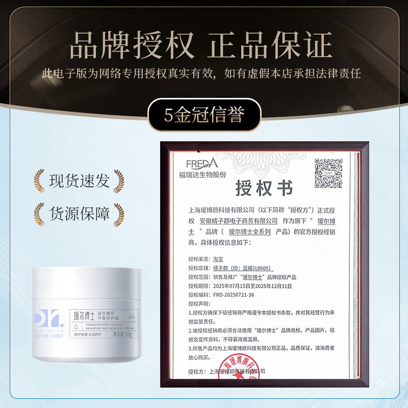 橘子郡瑷尔博士益生菌面霜2.0保湿修护屏障改善泛红滋润护肤霜