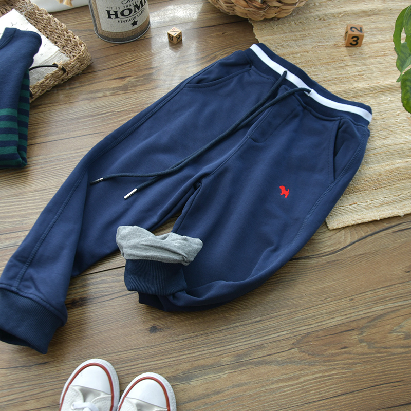 男童双层宽松运动裤秋冬季中大儿童百搭里外纯棉外裤冬季加厚卫裤