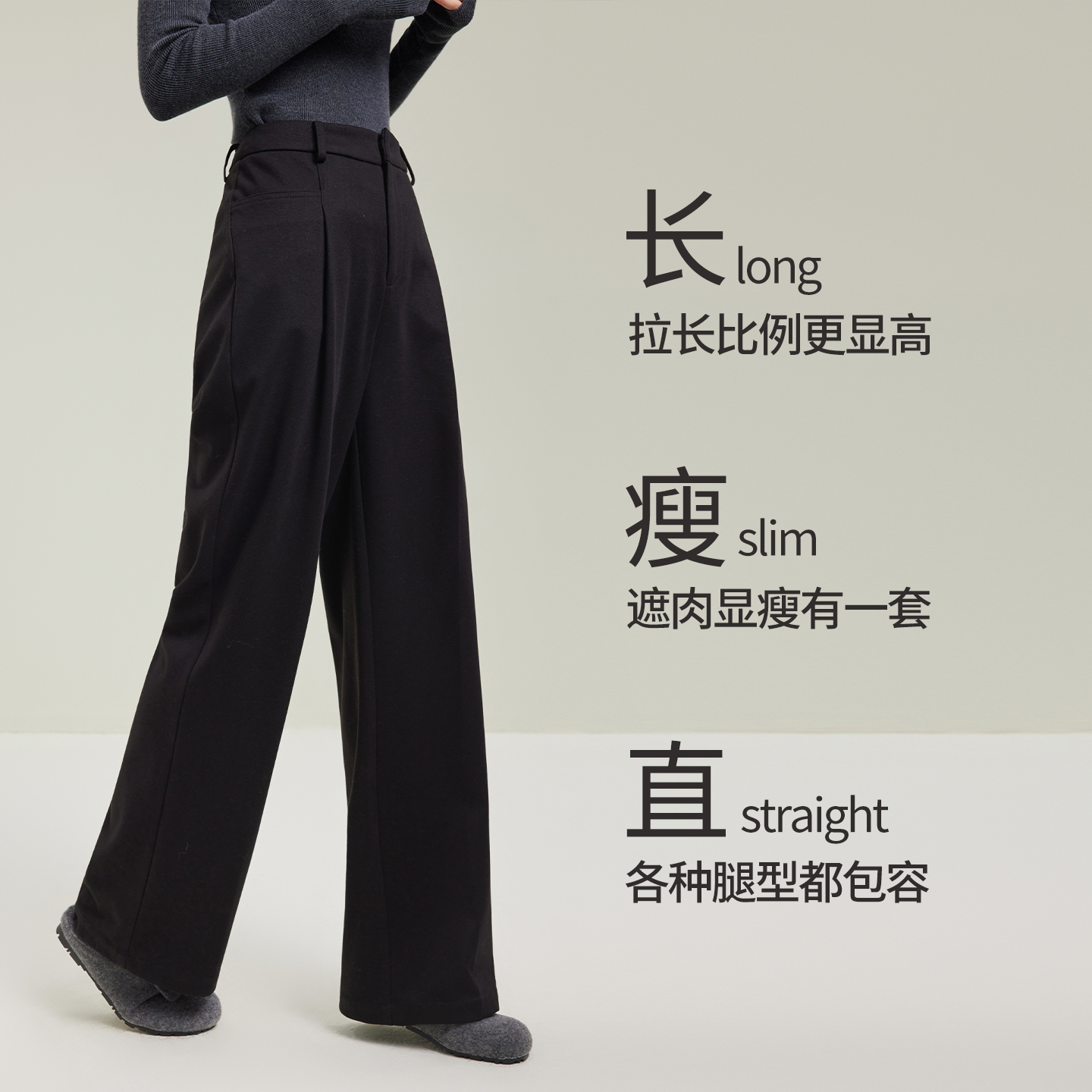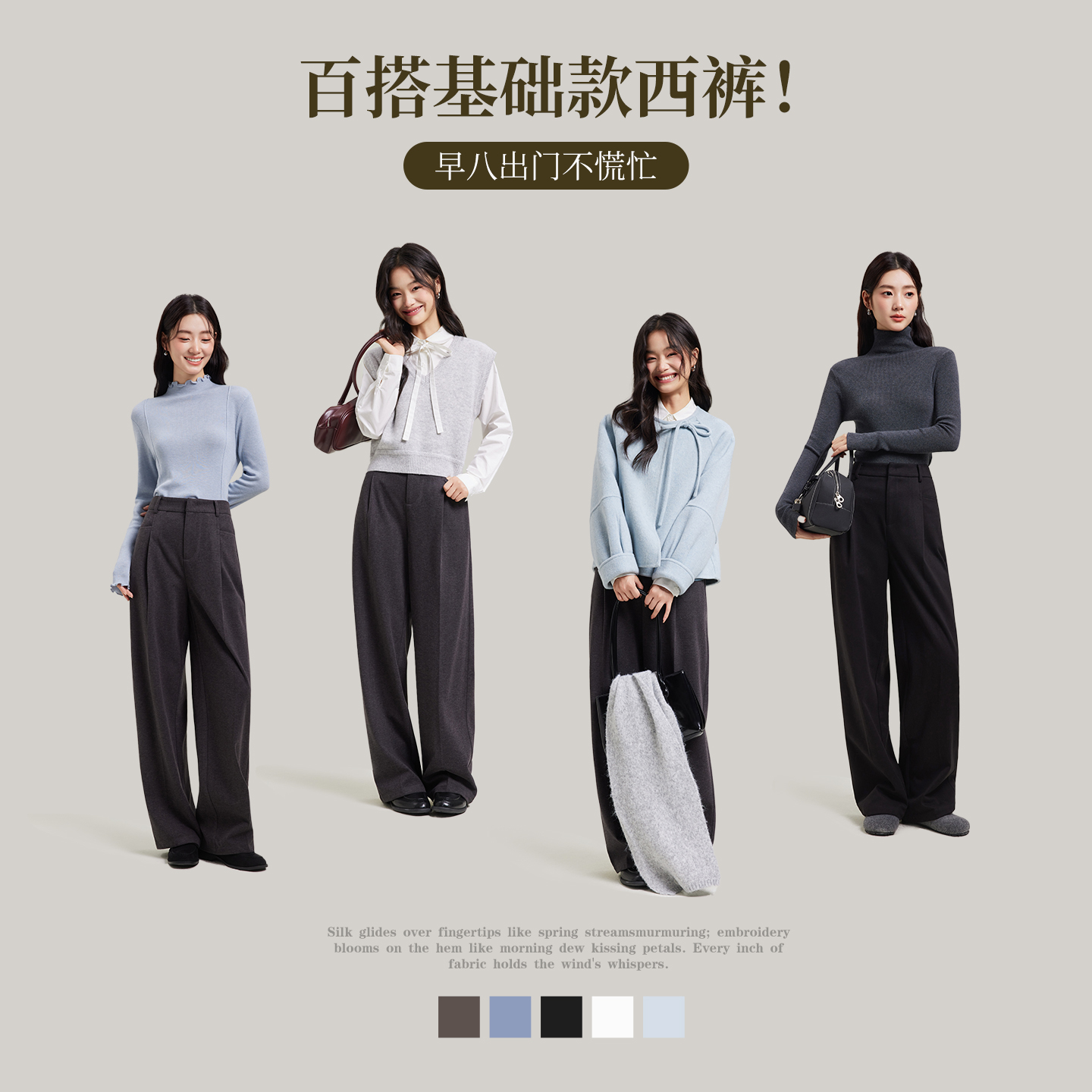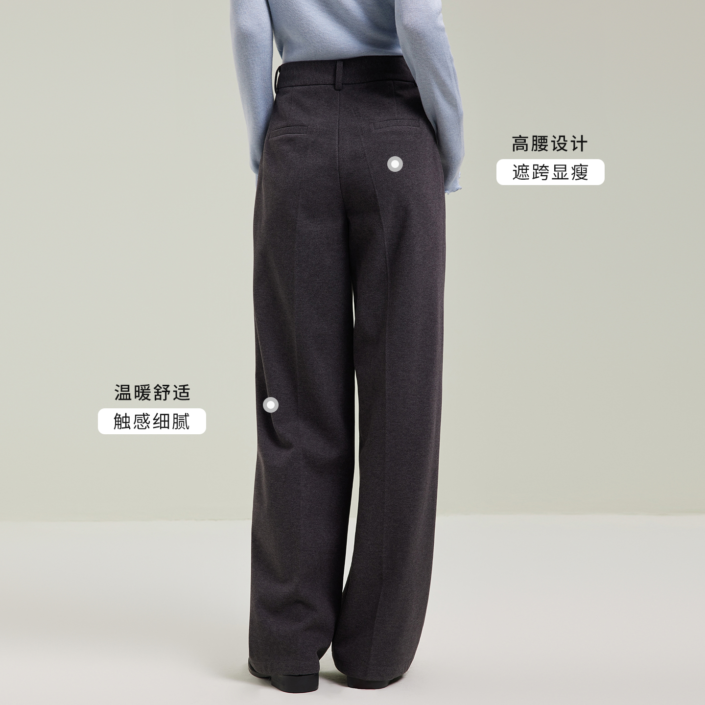图曼朵灰色西装阔腿裤休闲裤25秋冬新款毛呢加厚设计感通勤直筒裤