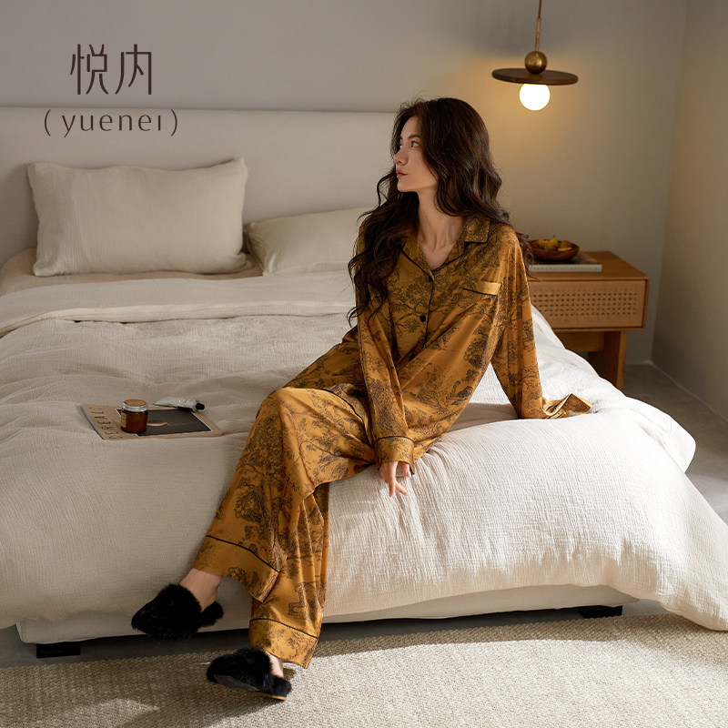 悦内睡衣女士春夏季冰丝长袖家居服春秋款秋季薄款仿真丝绸高级感