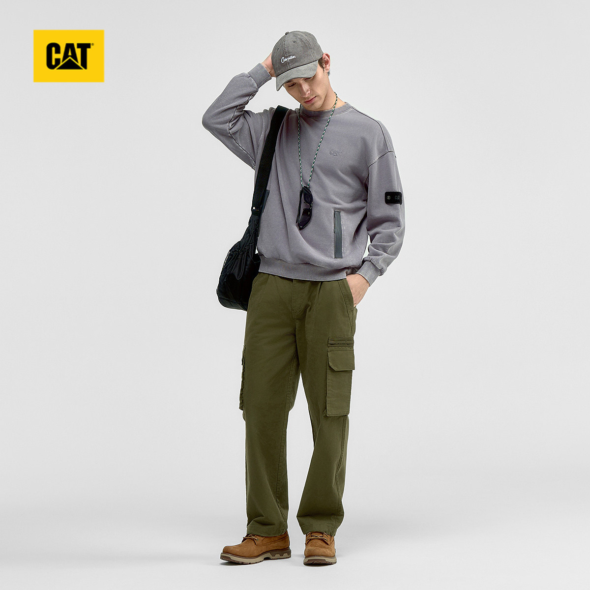 CAT卡特春季新品男士户外直筒对斜纹车缝线工装长裤商场同款